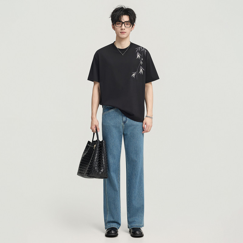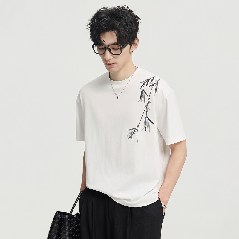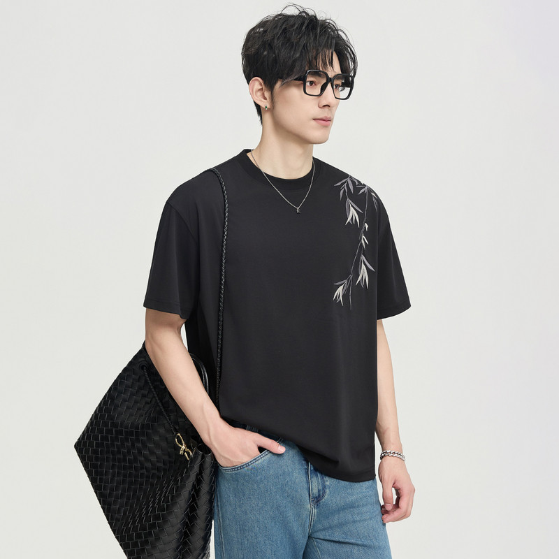 伯爵卓尔26年夏季新中式国风刺绣设计短袖T恤宽男松韩版圆领体恤