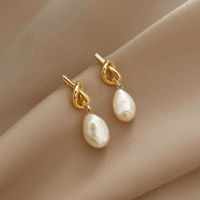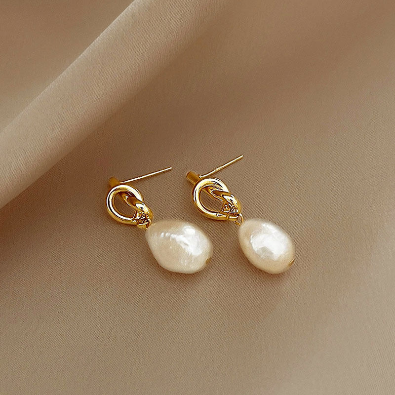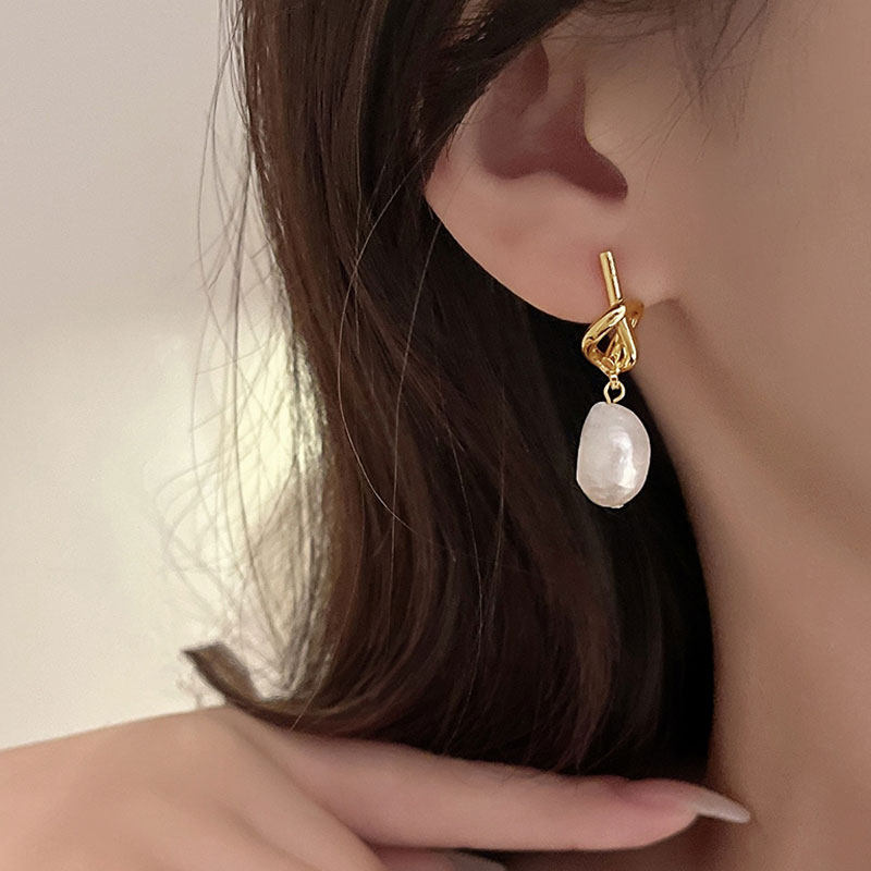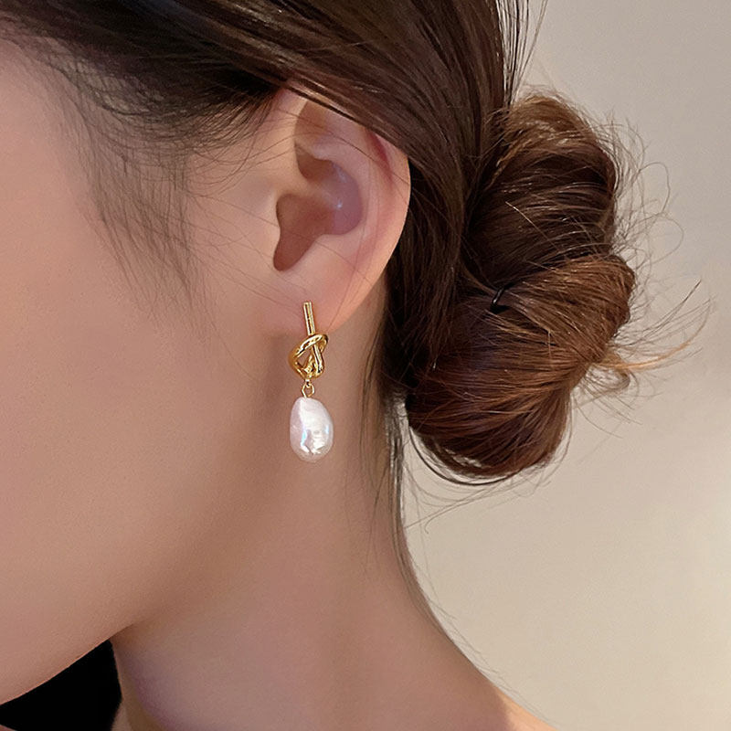 法式复古巴洛克天然珍珠耳环女独特设计高级轻奢中式气质绳结耳钉