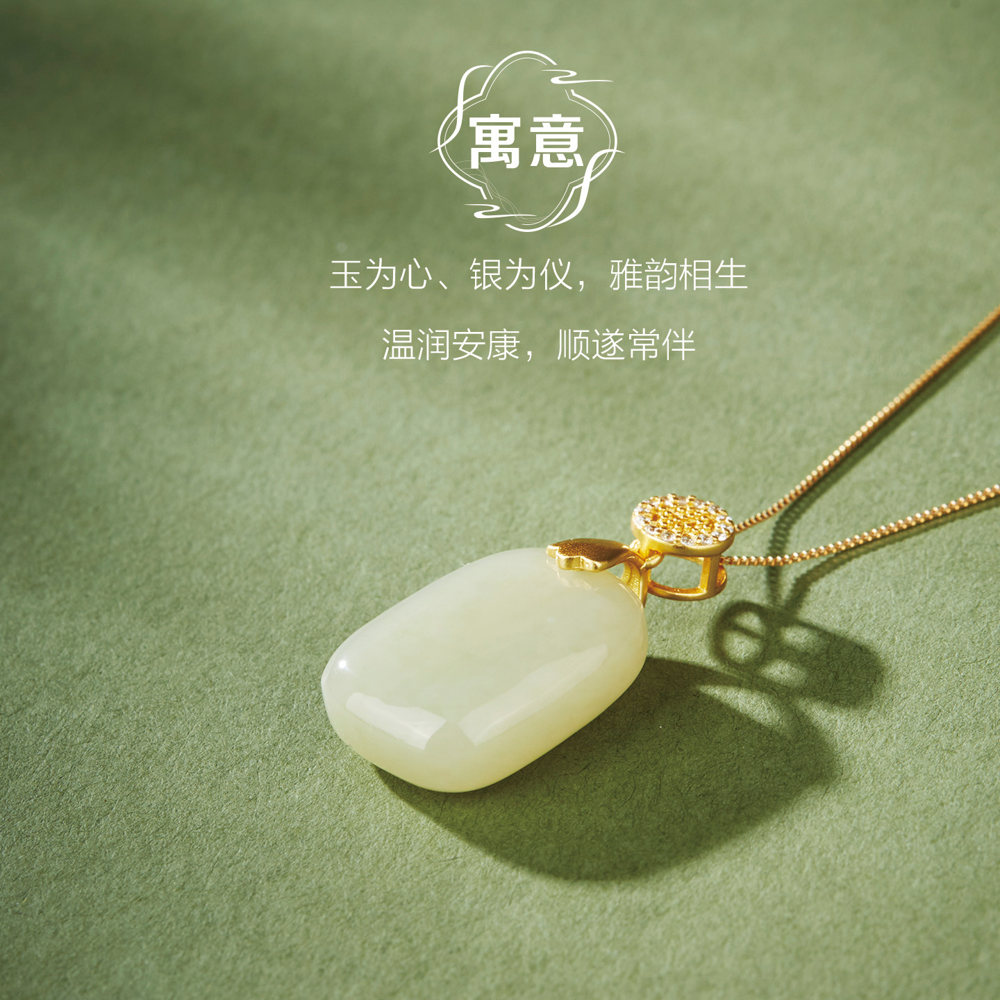 周六福小冰云吊坠祥云如意锁项链白月光玉髓男女款圣诞礼物