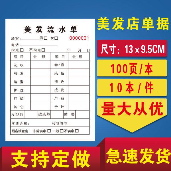 美发流水单收银单定制理发店消费单记账本美发单子美容美甲单定做