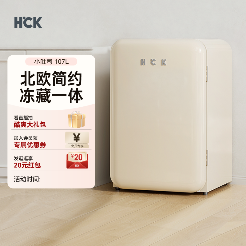HCK哈士奇复古冰箱107L冷冻冷藏小型高颜值单门家用静音网红节能