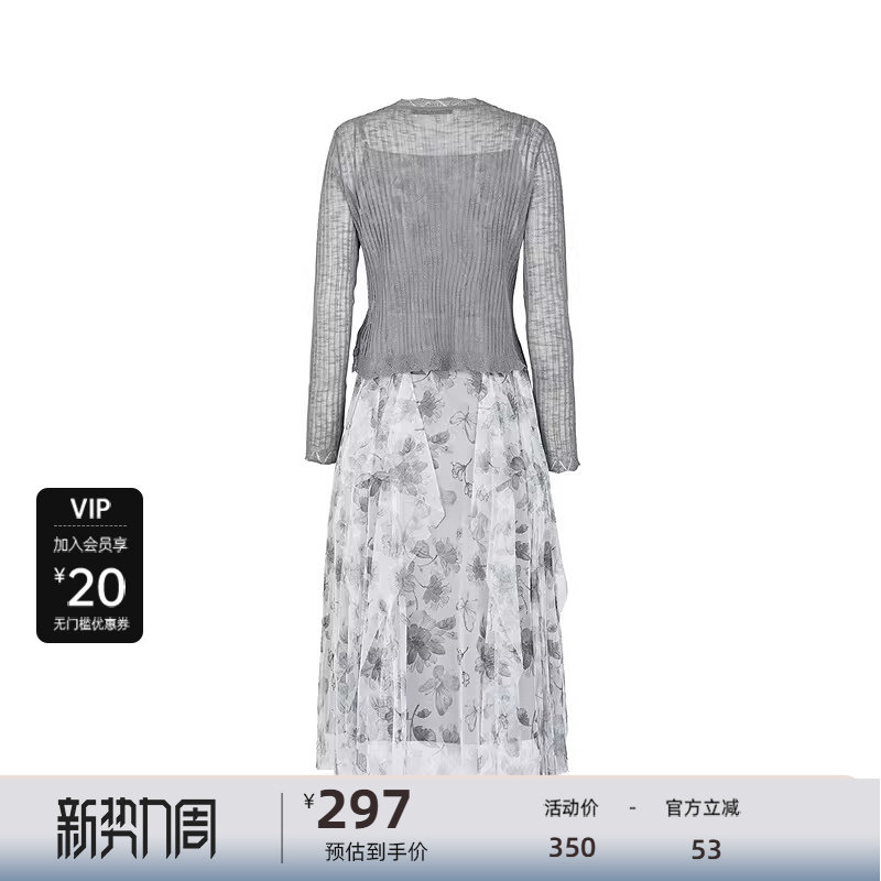sdeer圣迪奥女装印花收腰网纱针织衫吊带裙套装S243Z1409