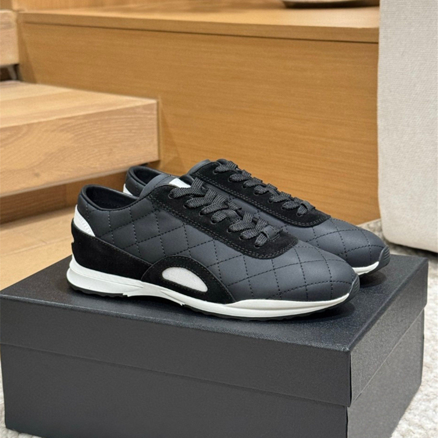 2026新款小香风菱格德训鞋女真皮休闲运动鞋系带板鞋平底球鞋