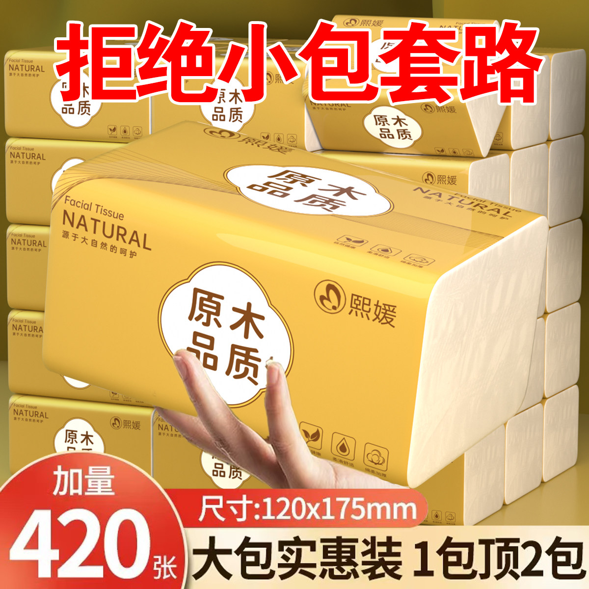 抽纸纸巾家用实惠装餐巾纸面巾纸擦手纸大号湿水可用加大加厚