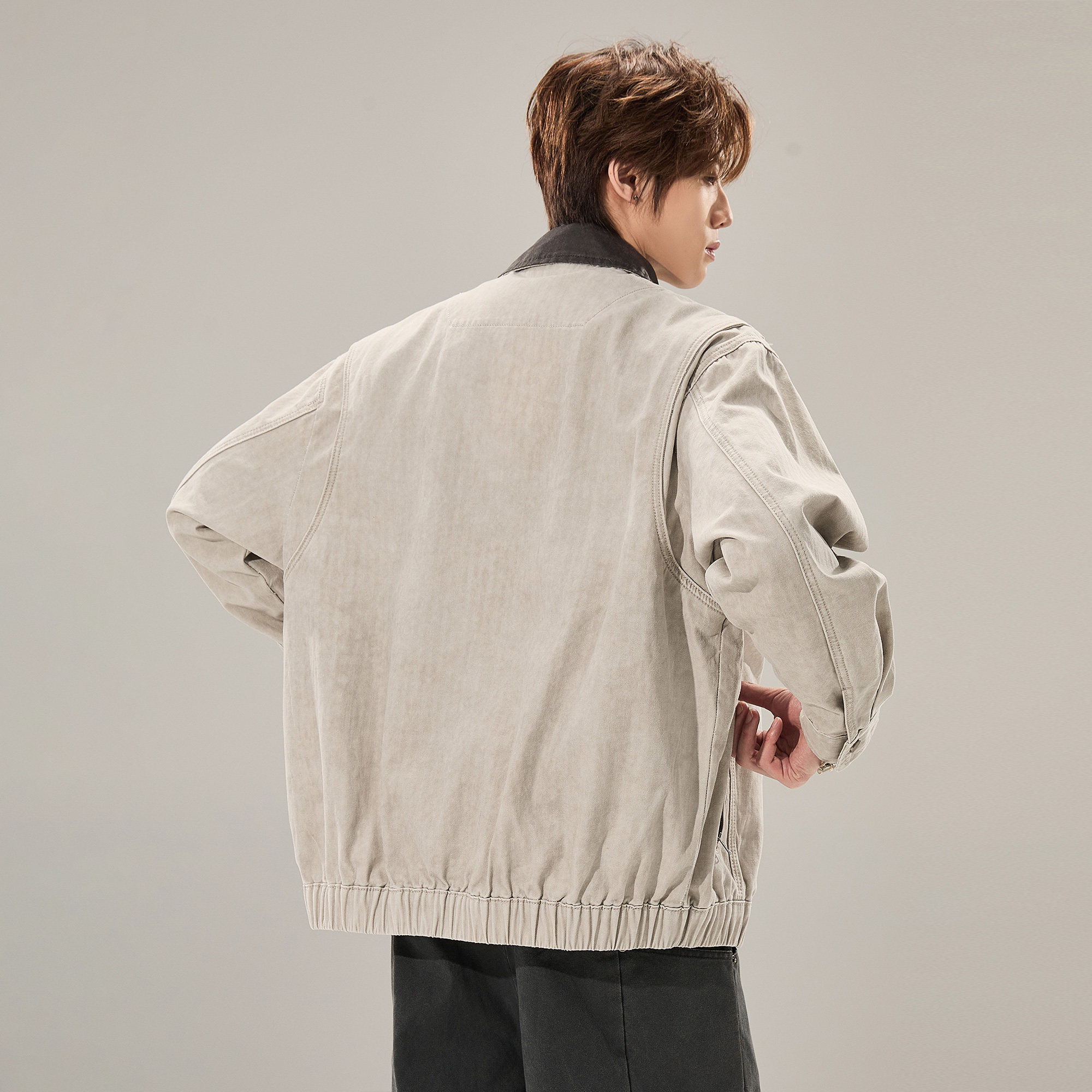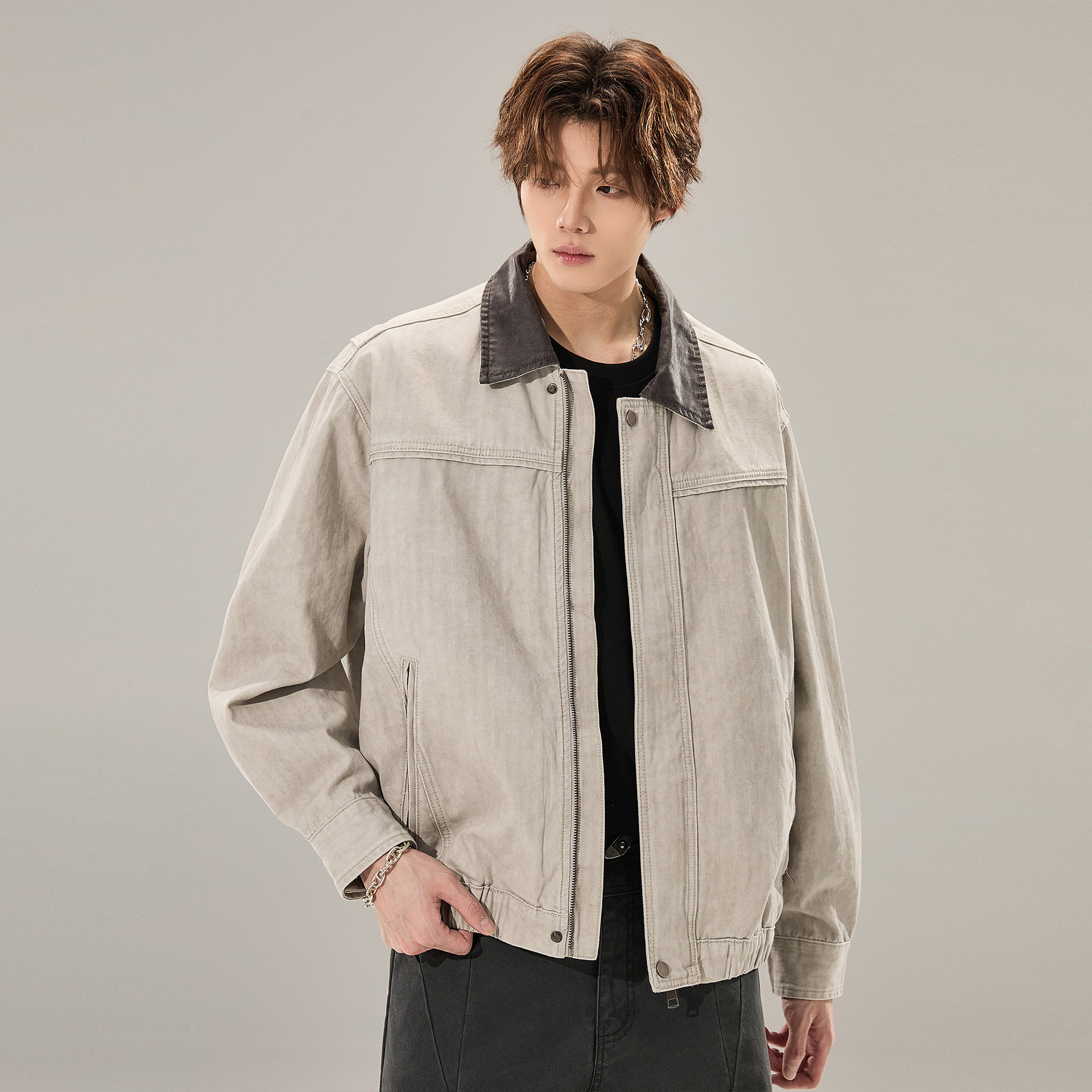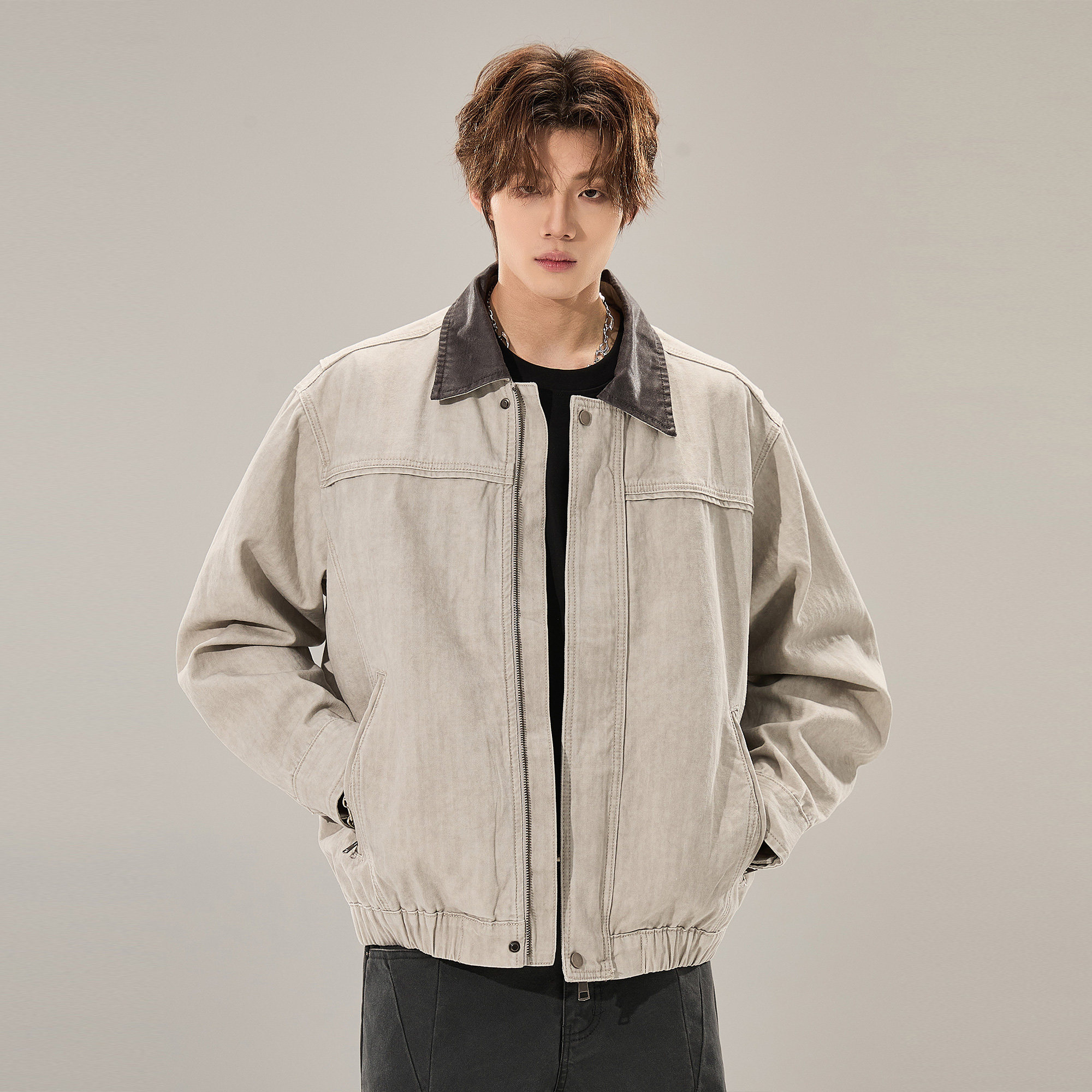 ALLIN 底特律水洗牛仔外套男春秋季美式cleanfit异色翻领情侣外套