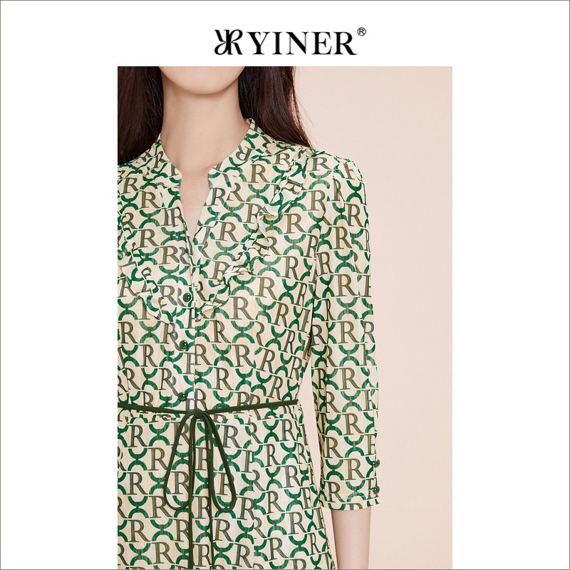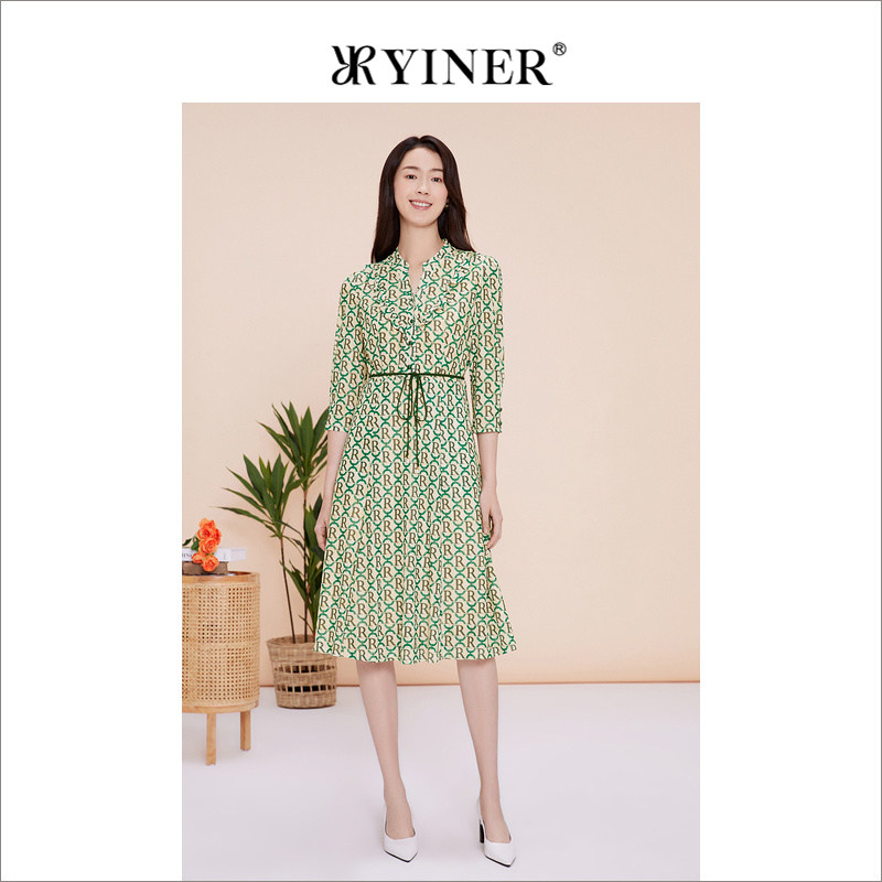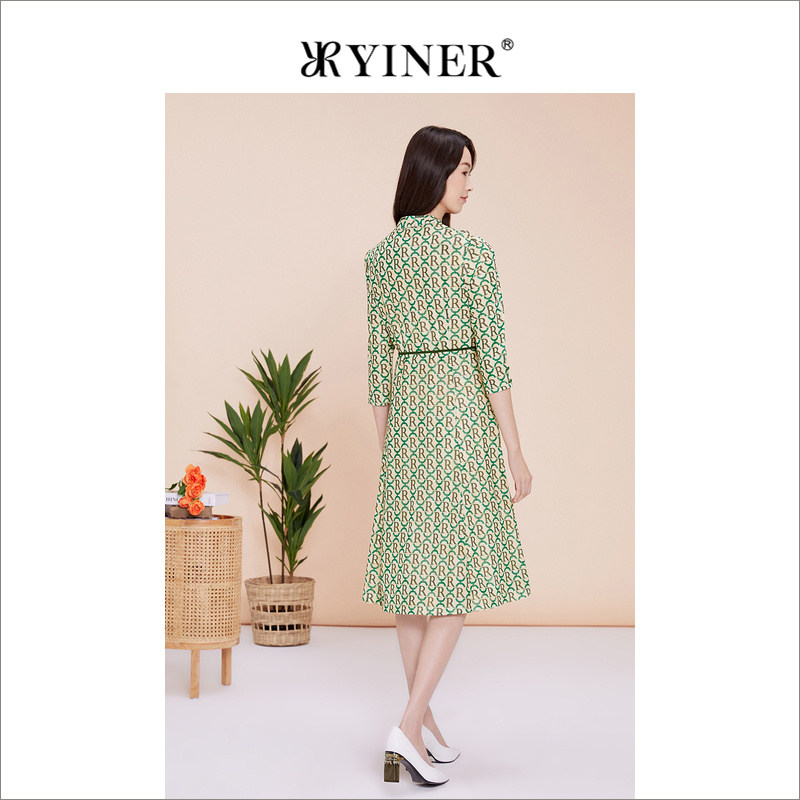 YINER音儿专选春季法式时尚字母印花碎花连衣裙