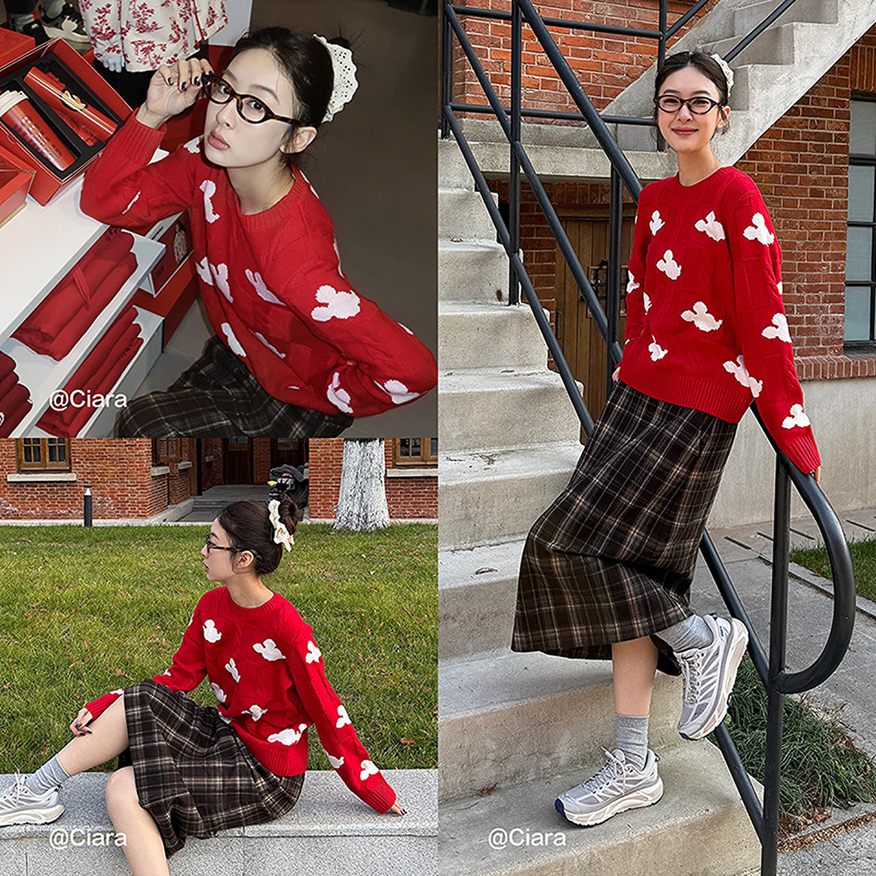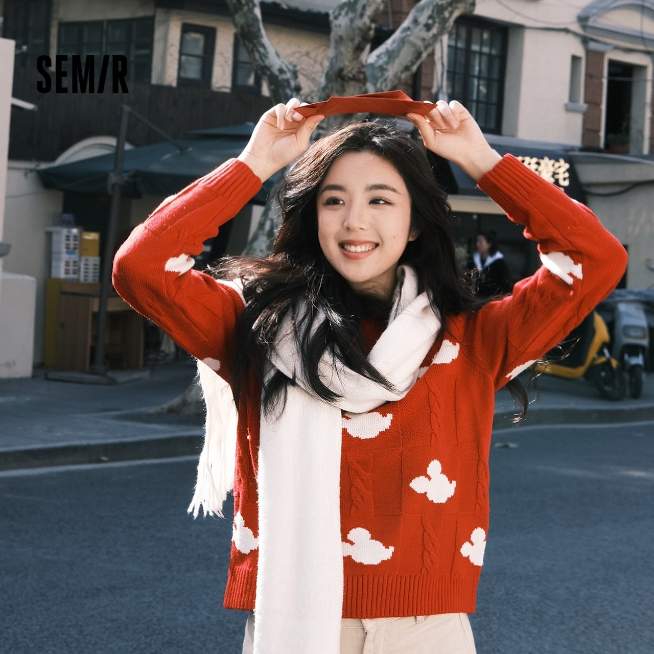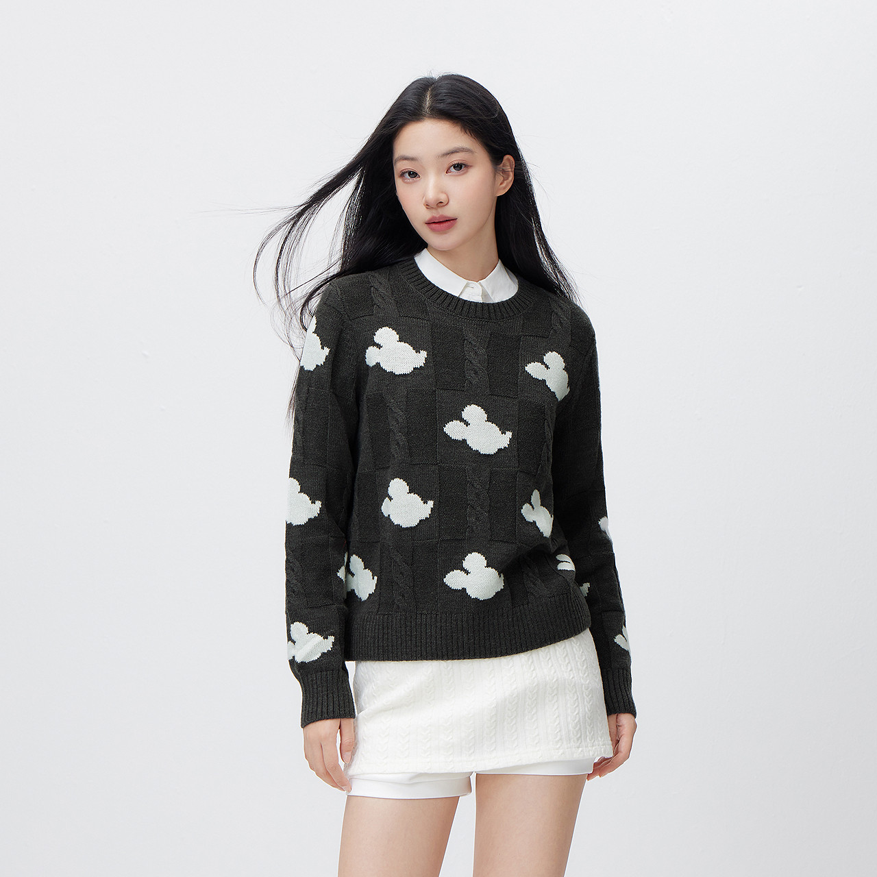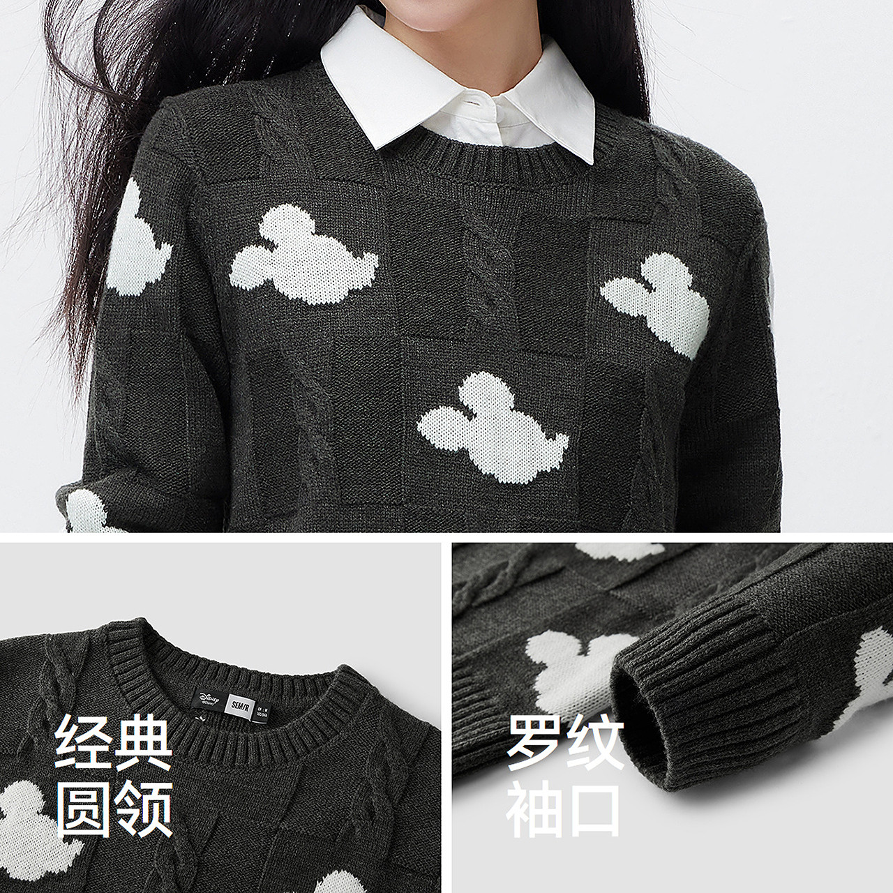 森马迪士尼合作系列毛衣女春绞花提花圆领上衣女生趣味个性套头衫