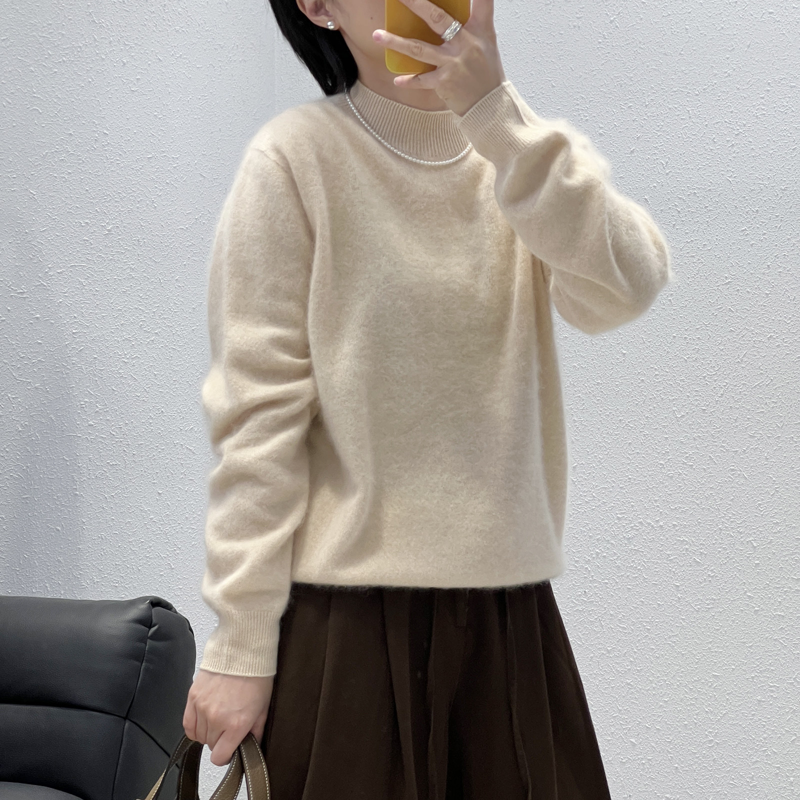 2025秋冬新款羊绒衫女低圆领宽松显瘦毛衣百搭100羊毛针织打底衫