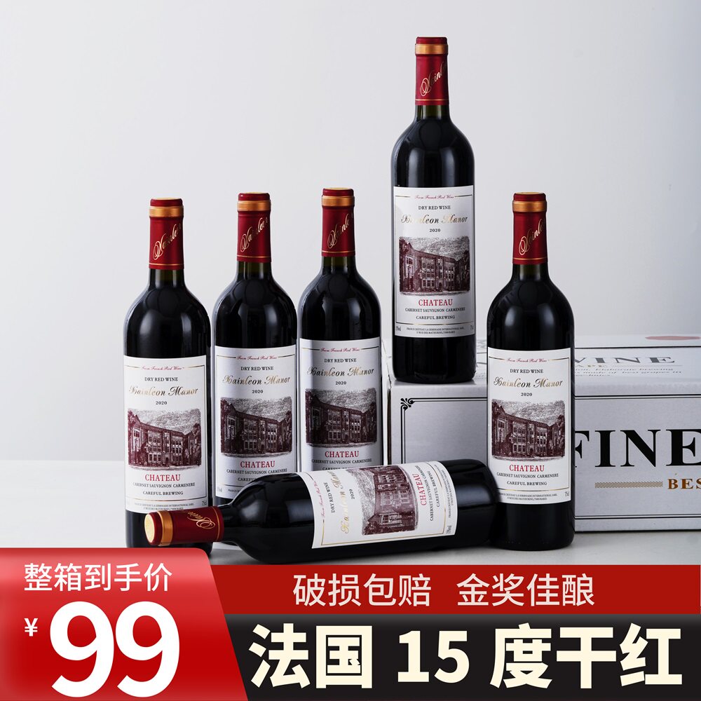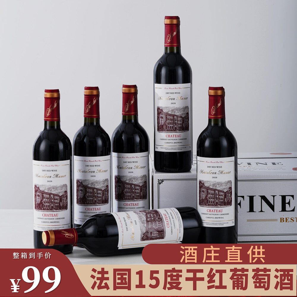 15度法国红酒赤霞珠精酿干红葡萄酒高档酒整箱六支礼盒装正品包邮