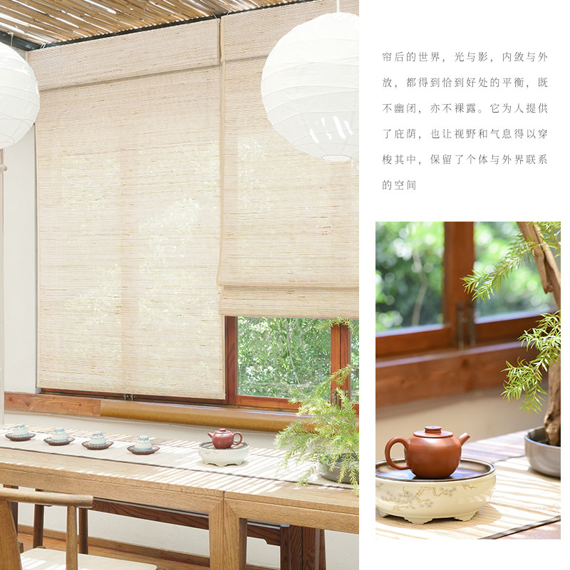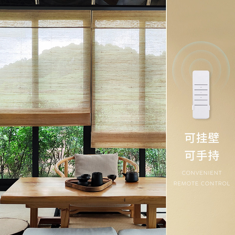 贵品电动智能禅意帘书房茶室客厅卧室卷帘窗帘遮光中式升降卷帘
