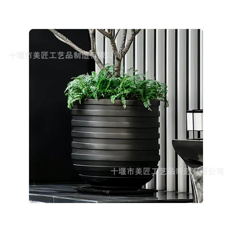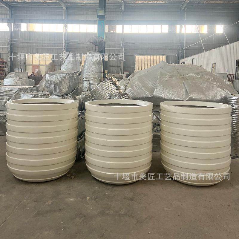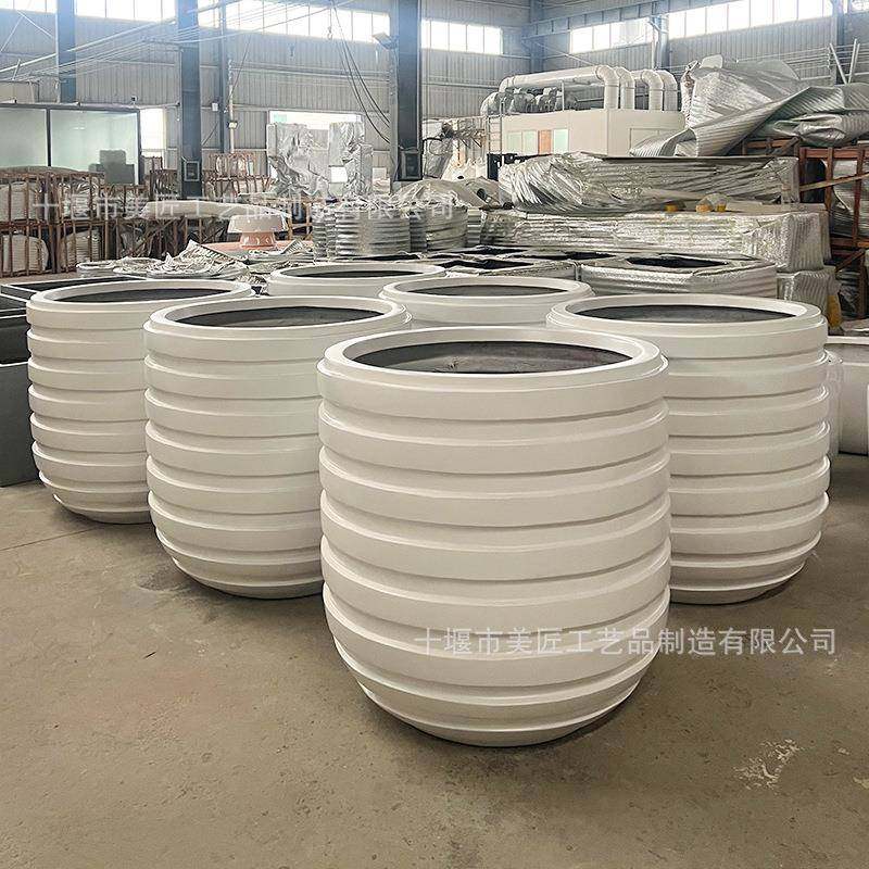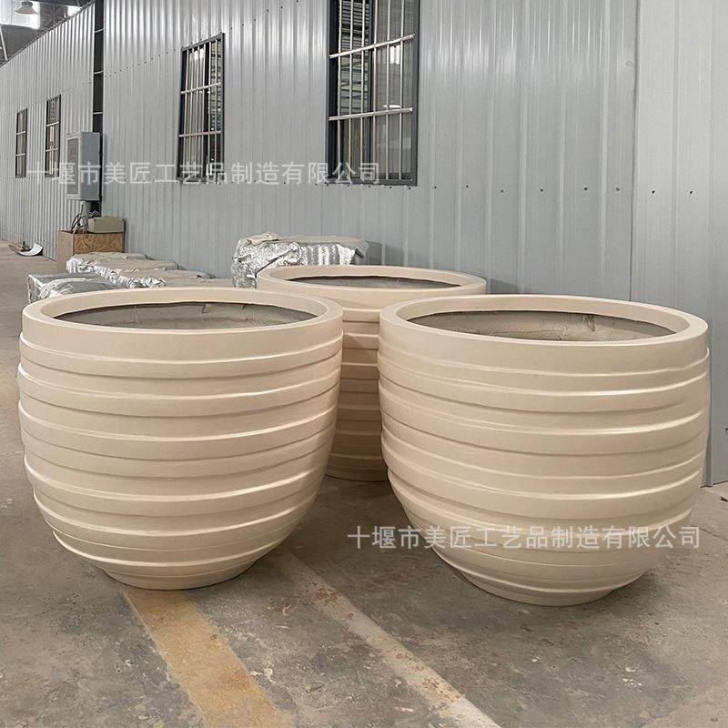 玻璃钢螺纹花盆商场条纹花钵波浪造型花器酒店美陈大花缸艺术花器