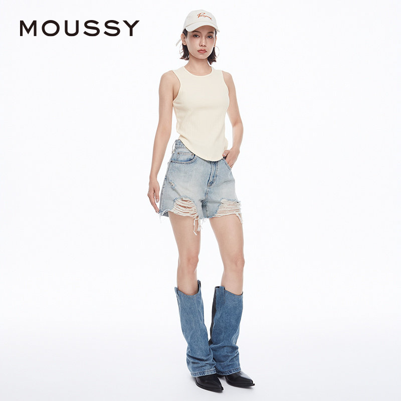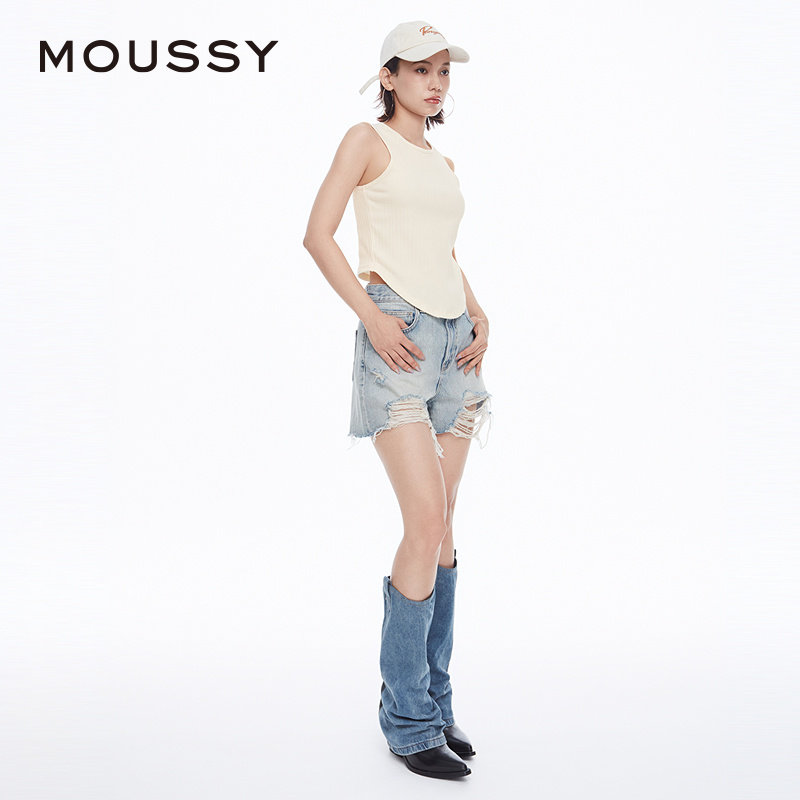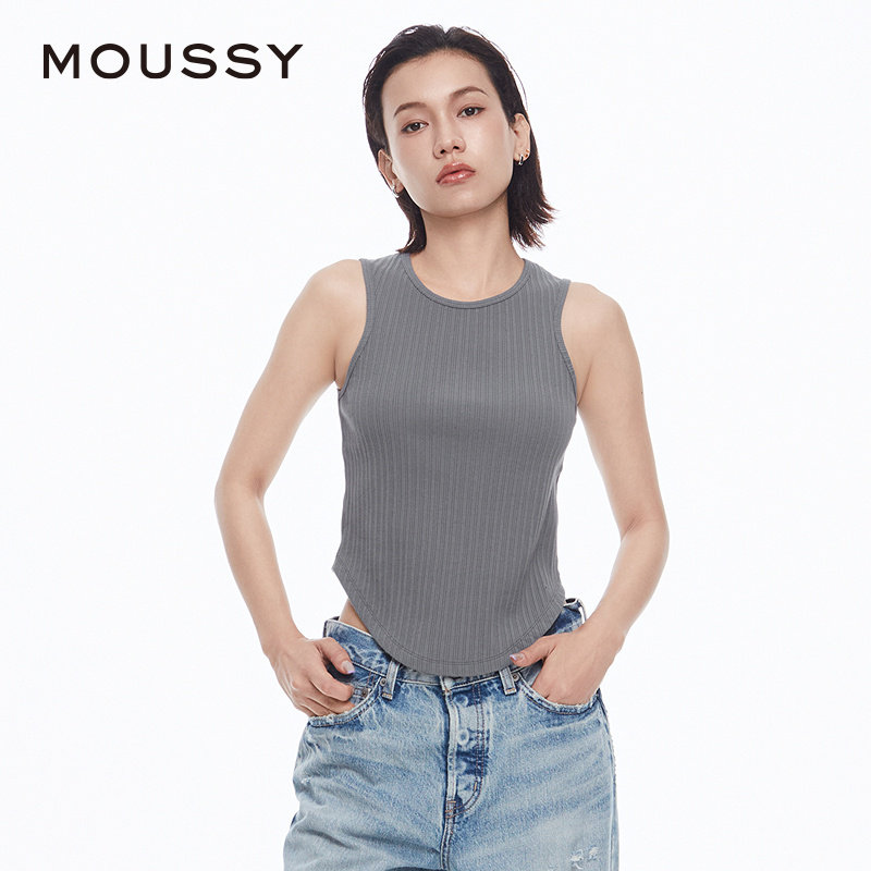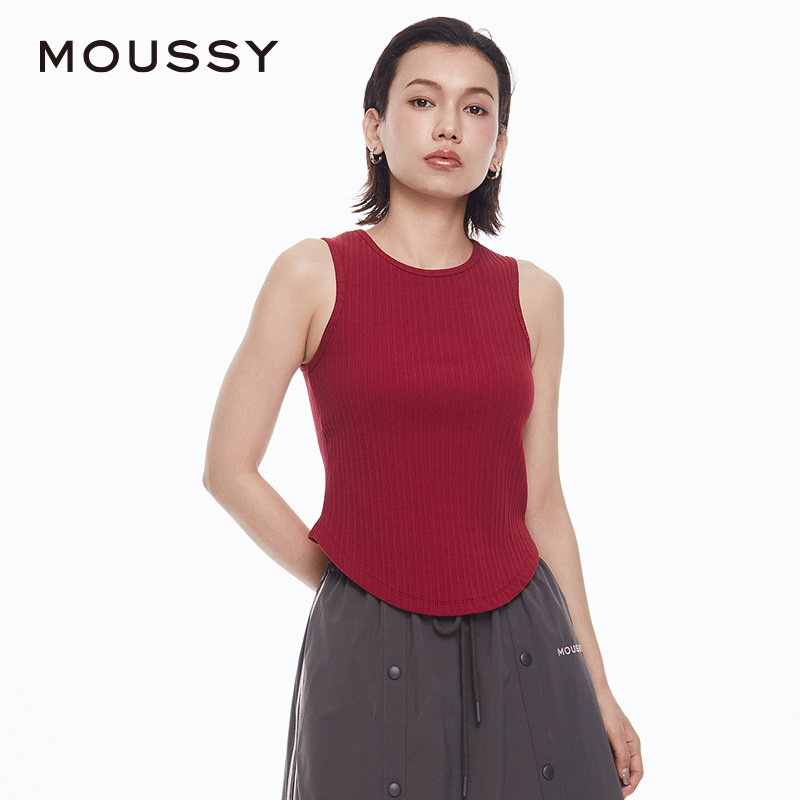 moussy 夏季新品简约通勤风弧形下摆针织衫背心028HAA80-1831