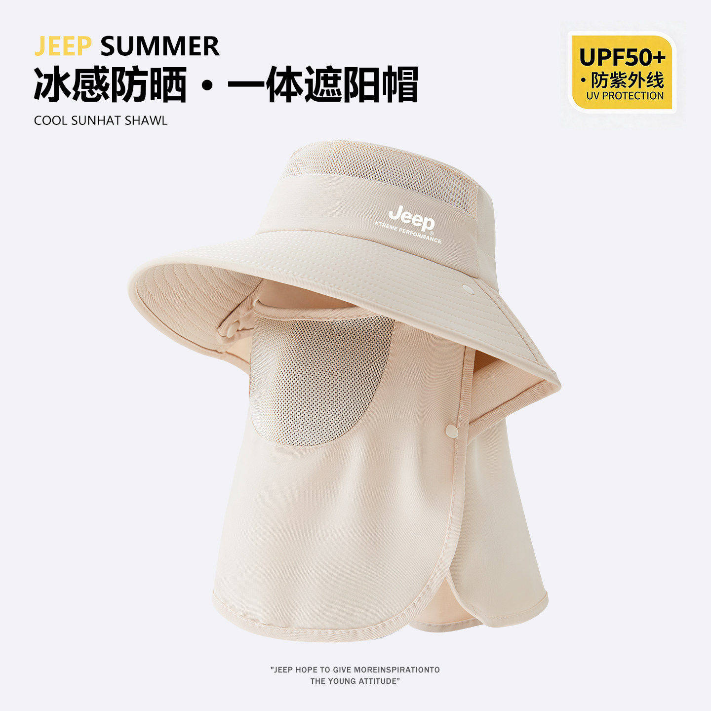 jeep吉普女士夏季防晒面罩渔夫帽户外骑行防紫外线披肩护颈帽子女
