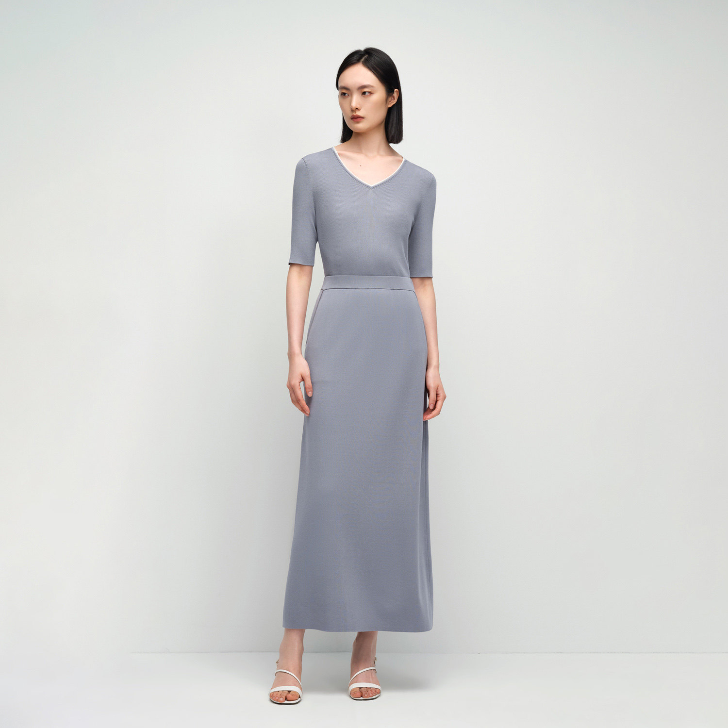 OVV2025春夏新款女装经典直筒易搭配休闲通勤针织半身裙