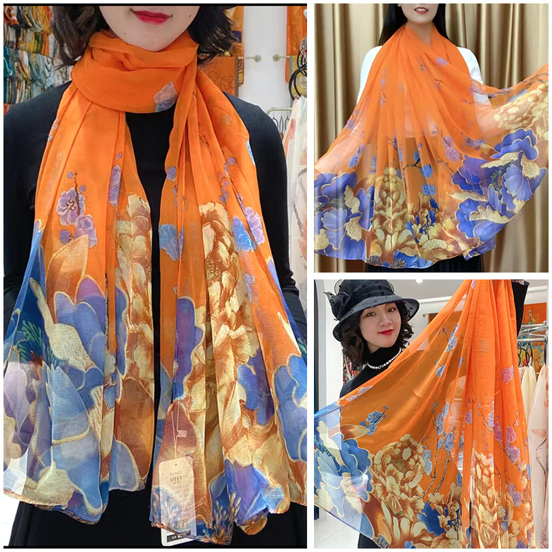 真丝丝巾围巾送妈妈婆婆生日礼物苏绣旗袍披肩桑蚕丝礼盒送长辈