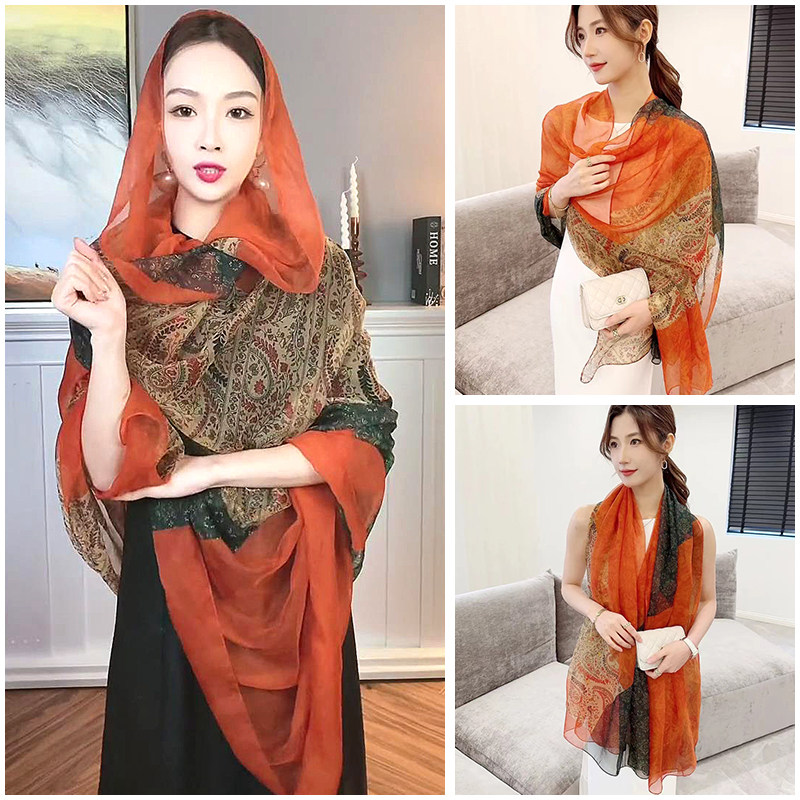 夏季薄款防晒丝巾纱巾旅游拍照海边外搭披肩围巾女长款百搭沙滩巾