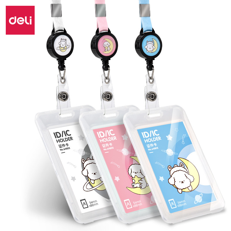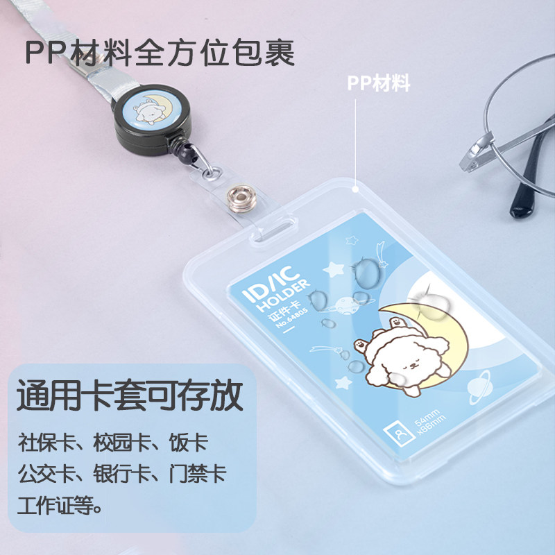 得力证件卡套学生胸卡饭卡挂绳伸缩扣工作证公交卡保护套通用卡套