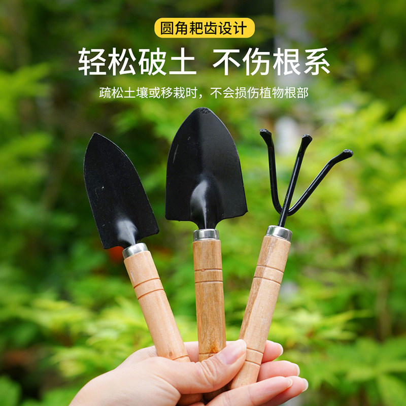 种花工具家用套装种菜盆栽养花多肉铲挖土耙子铁锹园艺小铲子三件