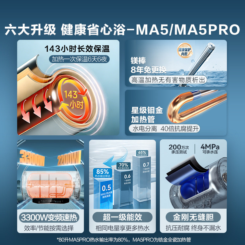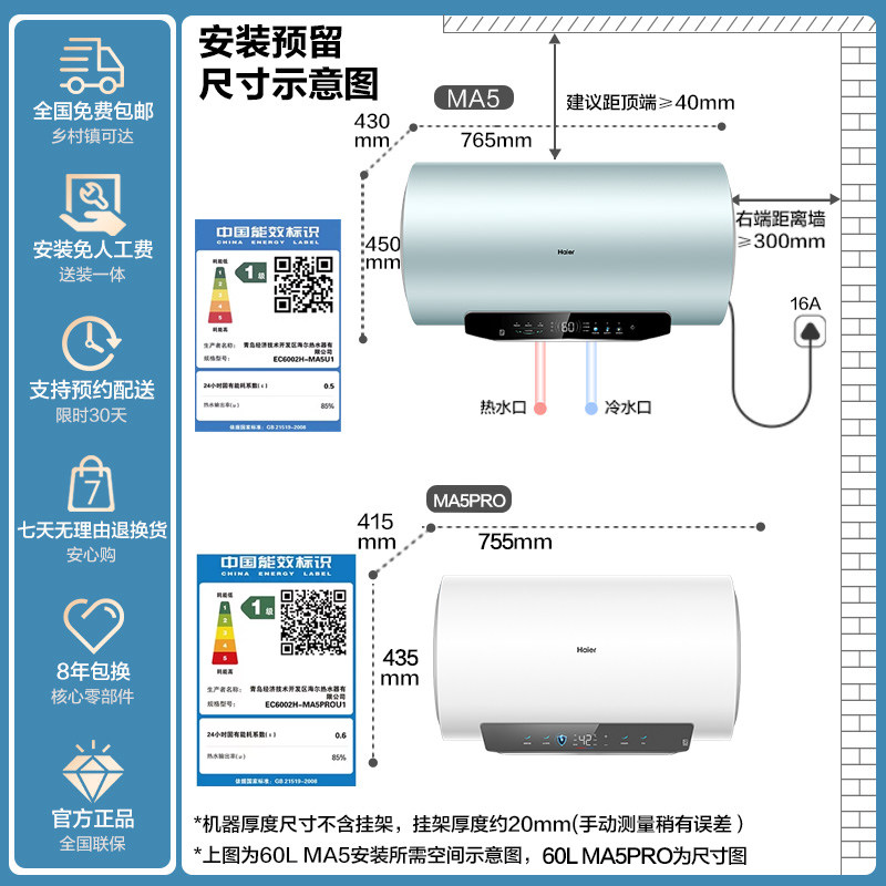 [焕新补贴]海尔电热水器家用洗澡超一级能效60L免换镁棒MA5