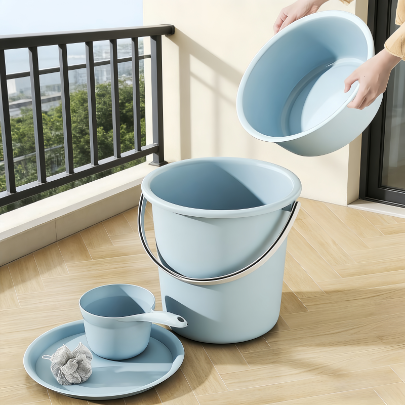 水桶耐摔抗压家用储水塑料桶洗衣手提加厚带盖学生宿舍洗漱三件套
