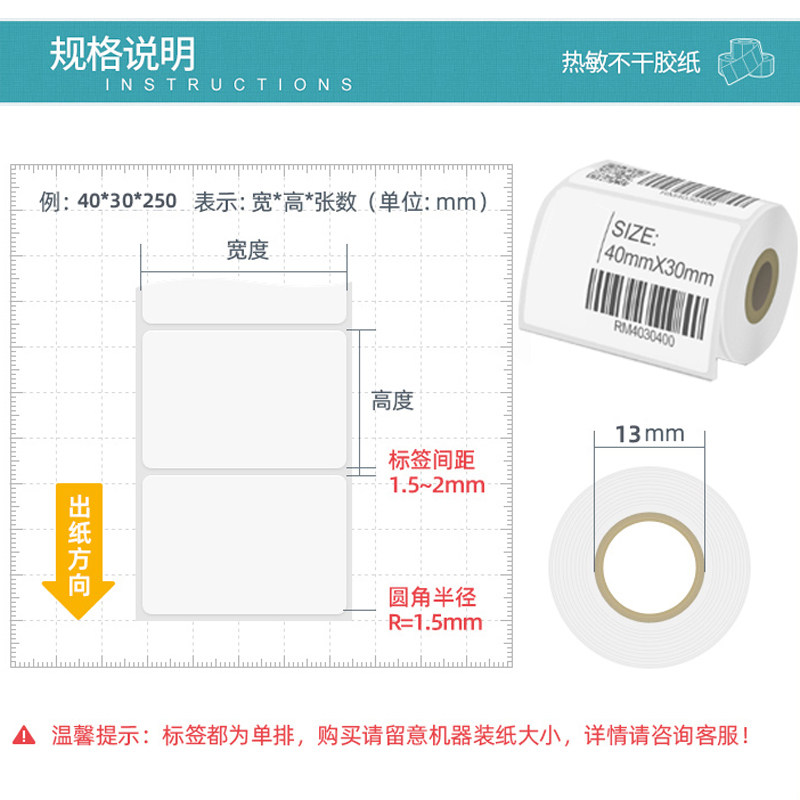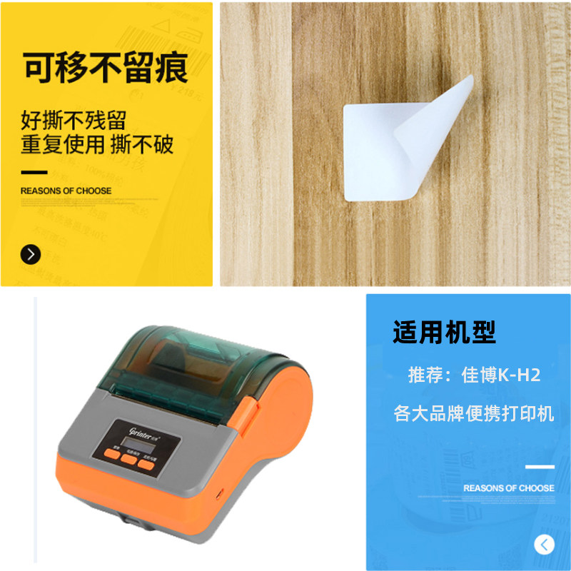小卷芯纸开料易撕80*60*40*30家具板材瓷砖玻璃可撕标签撕不烂不留胶可移除防水热敏不干胶合成标签纸53*35MM