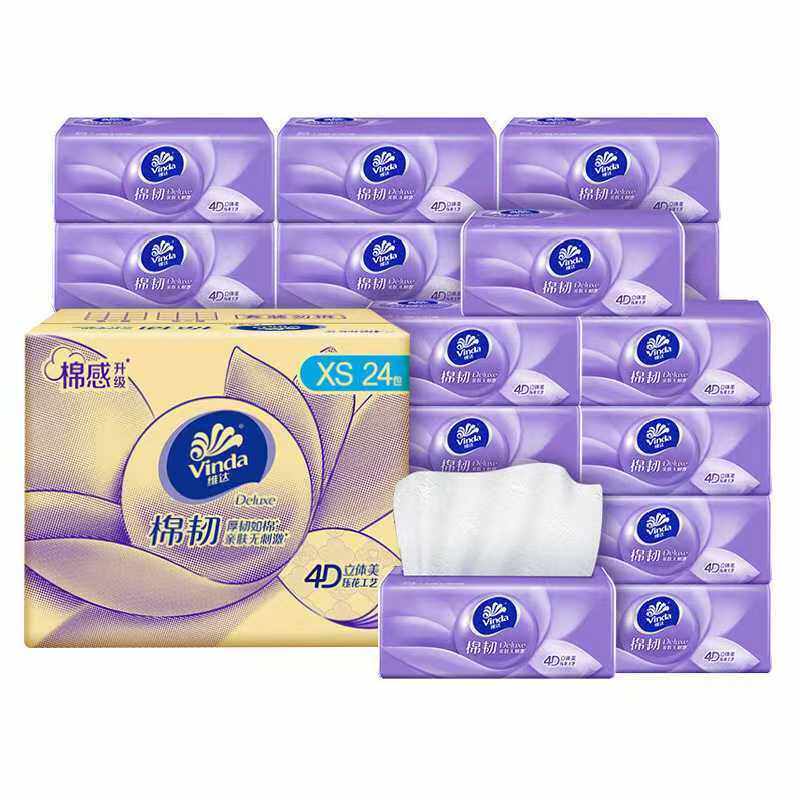 【百亿补贴臻选】维达抽纸棉韧立体美24包整箱家用实惠装卫生纸巾