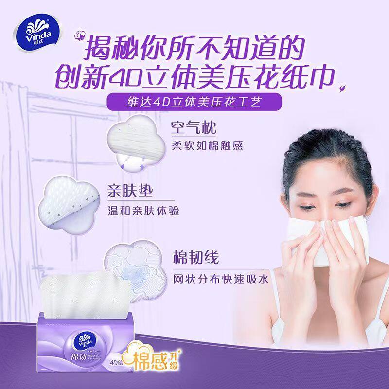 维达抽纸棉韧立体压花3层100抽大包厚实正品卫生纸面巾纸餐巾纸抽