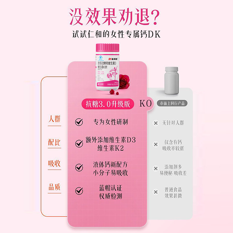 21金维他女性钙片柠檬酸钙维生素D3K2孕妇补钙骨质疏松维他命