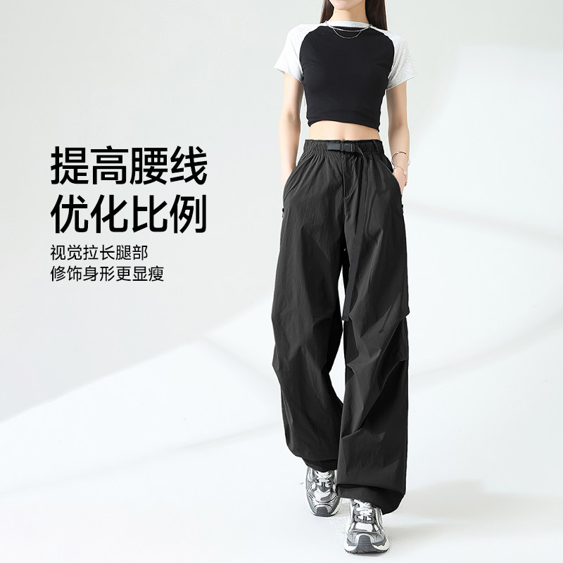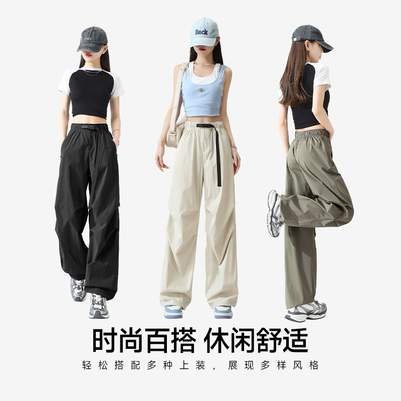 KMV真维斯美式工装裤女夏季2025新款冰丝速干运动户外防晒直筒裤