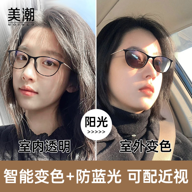 感光变色超轻猫眼近视眼镜可配度数女小脸小框防蓝光抗辐射平光镜