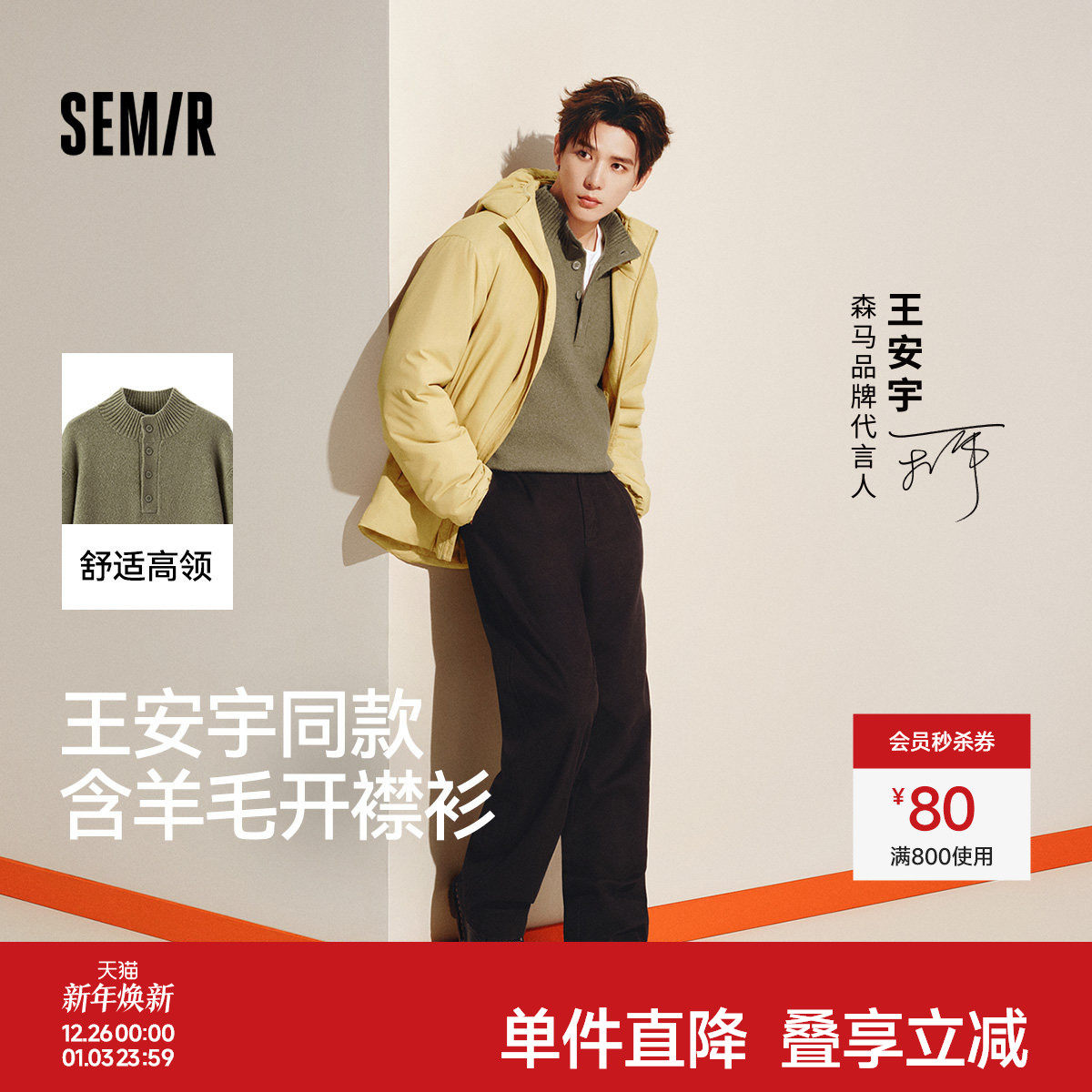 王安宇同款森马毛衫男冬半开襟高领针织衫含羊毛2025新款基础毛衣