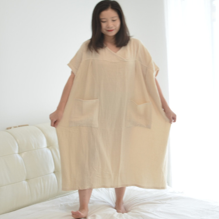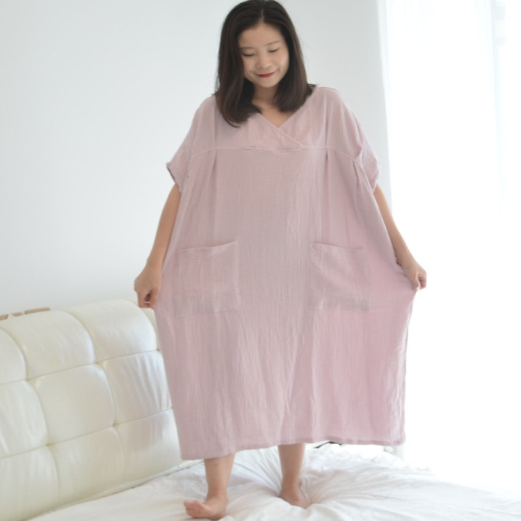 300斤超肥加大码纯棉纱布睡裙女胖MM夏季短袖加长款宽松家居睡衣