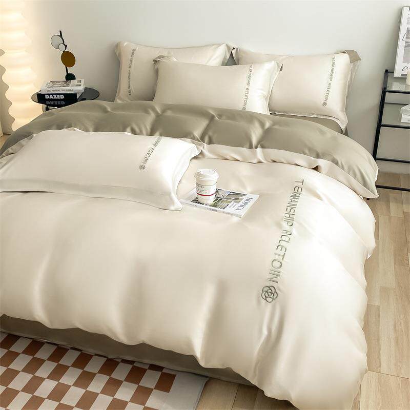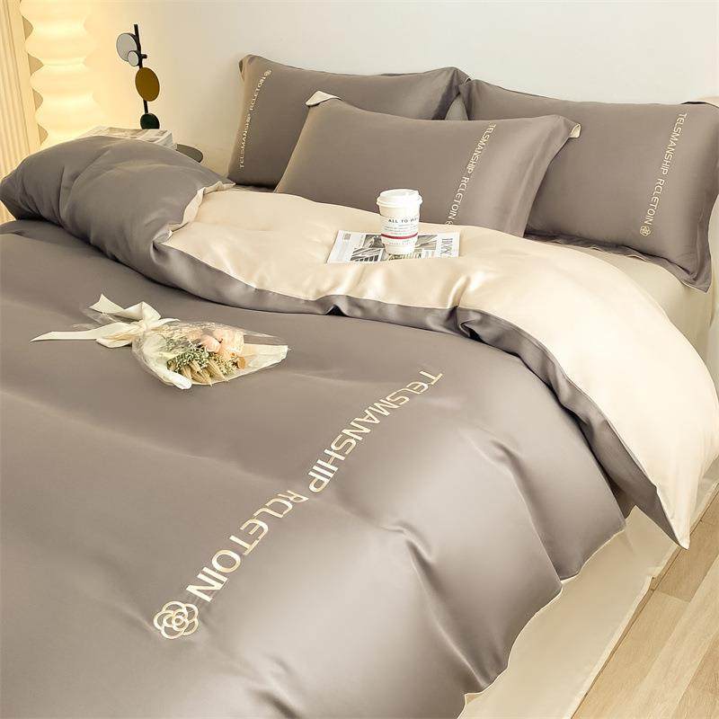 2025新款水洗真丝双拼刺绣小山茶花四件套三件套-芮雅系列