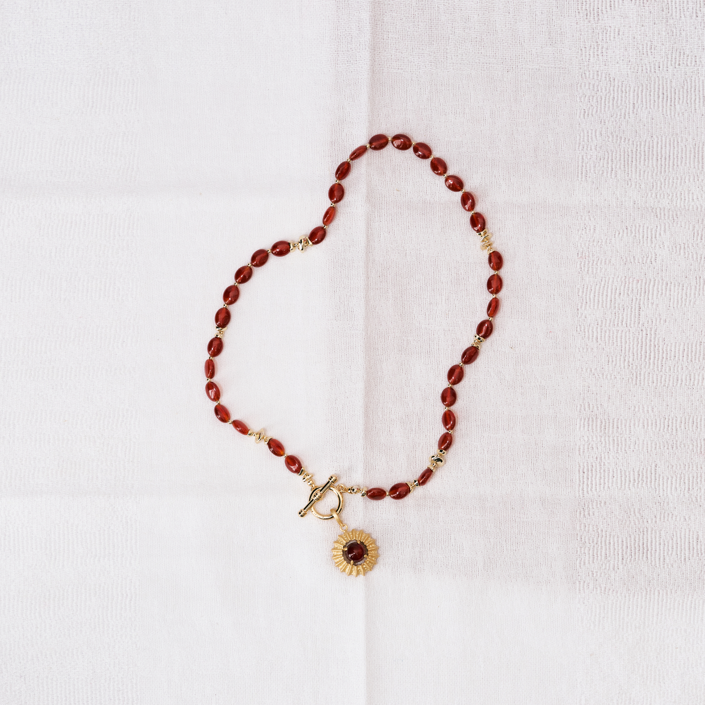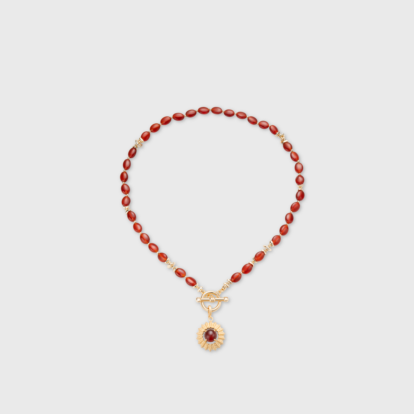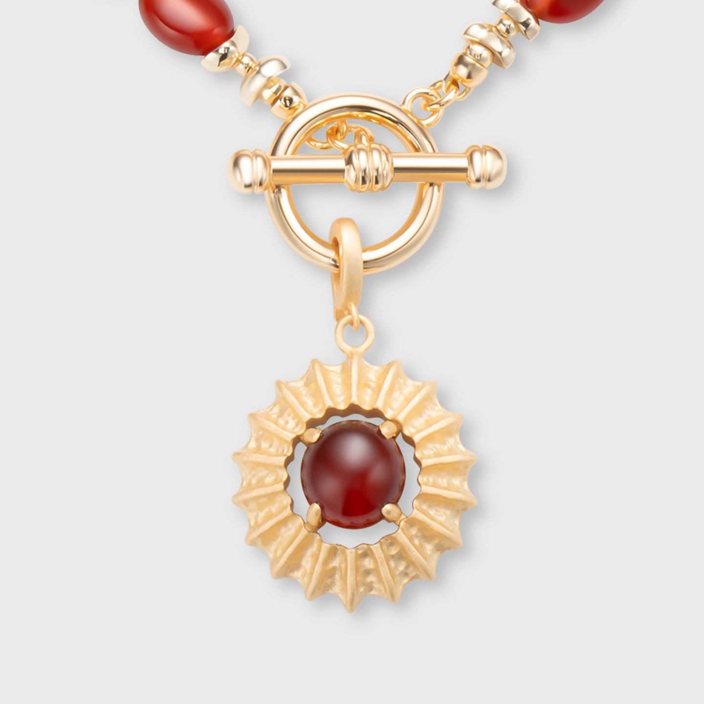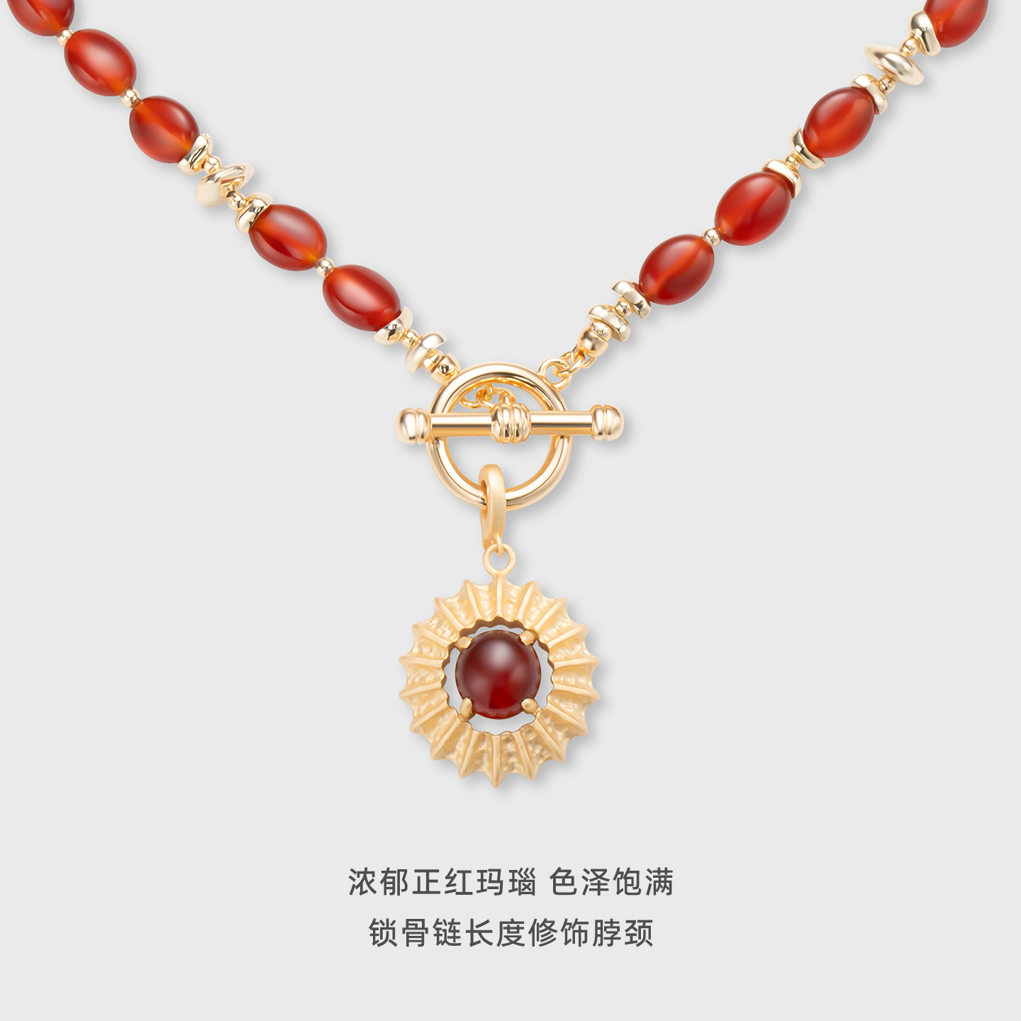 lost in echo2026春夏新款红玛瑙串珠高级哑光质感太阳吊坠项链女