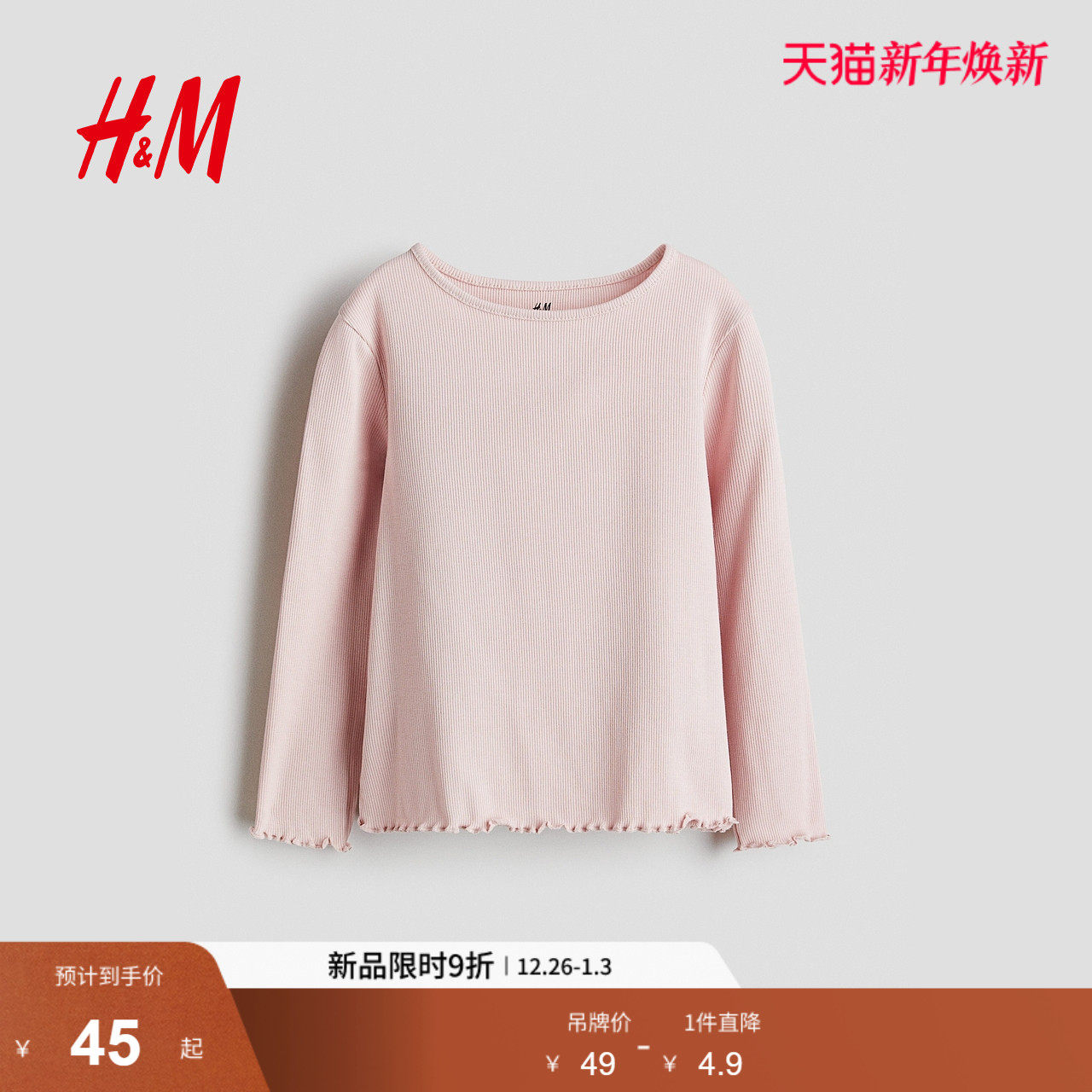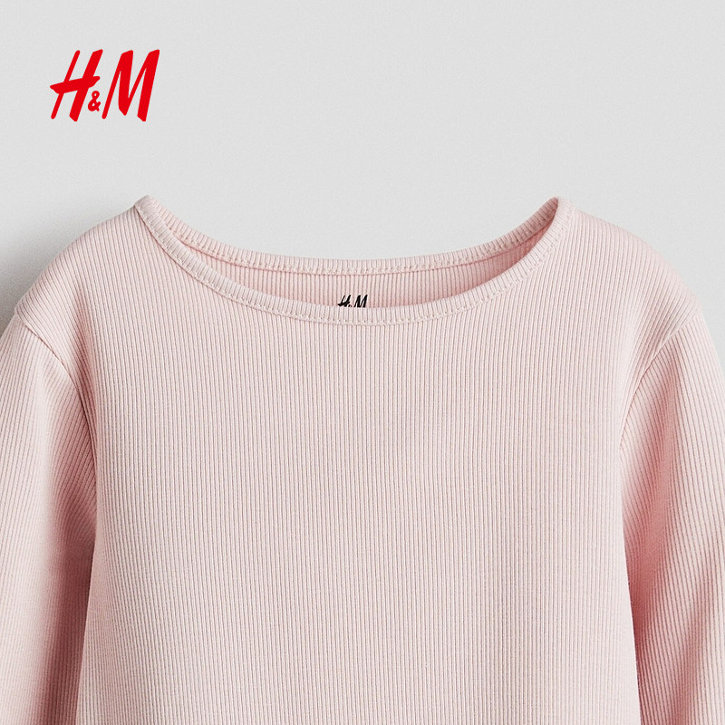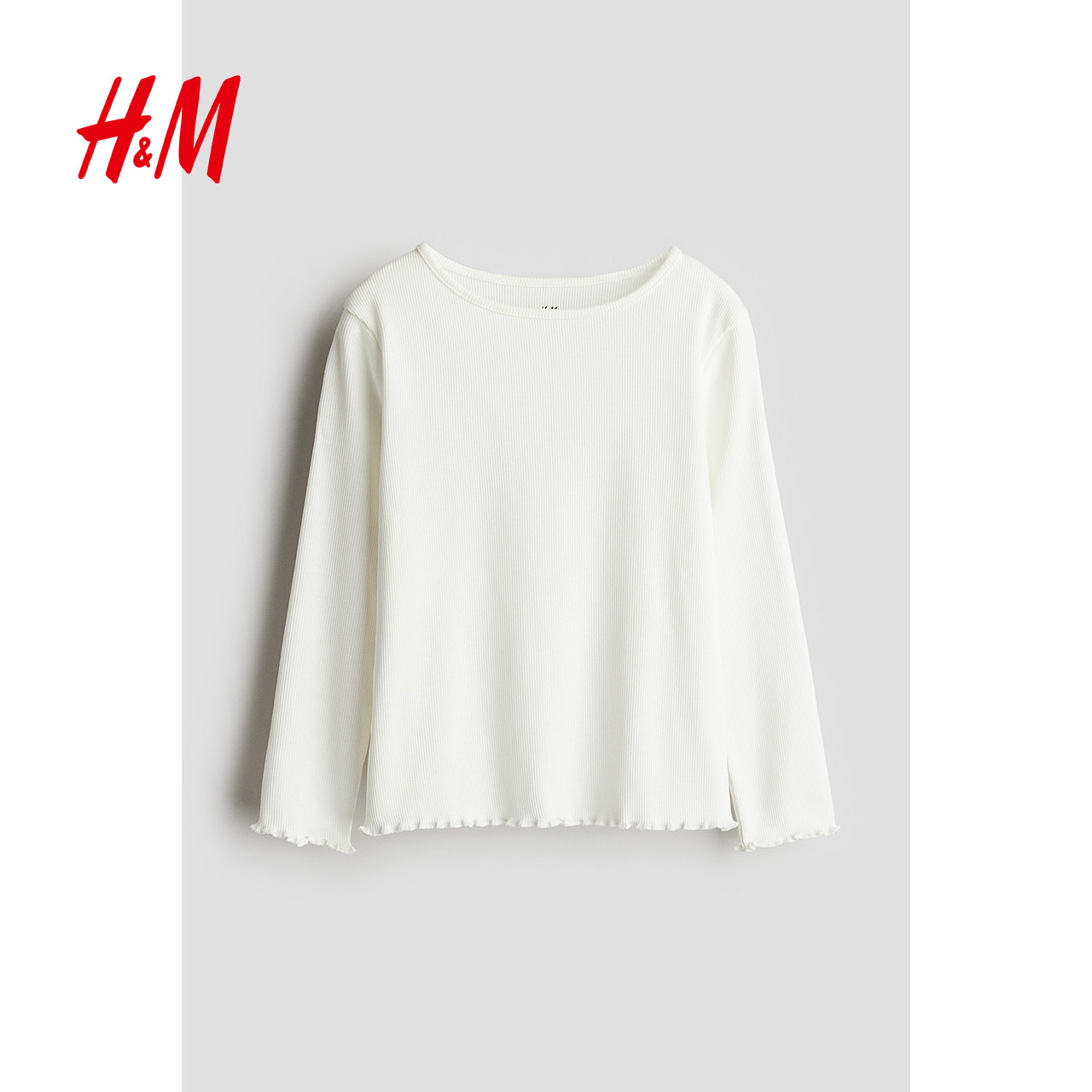 HM童装儿童女童T恤2025新款休闲圆领长袖柔软罗纹内搭上衣1212699