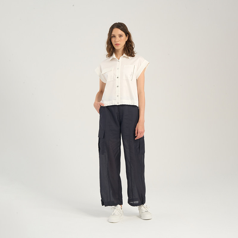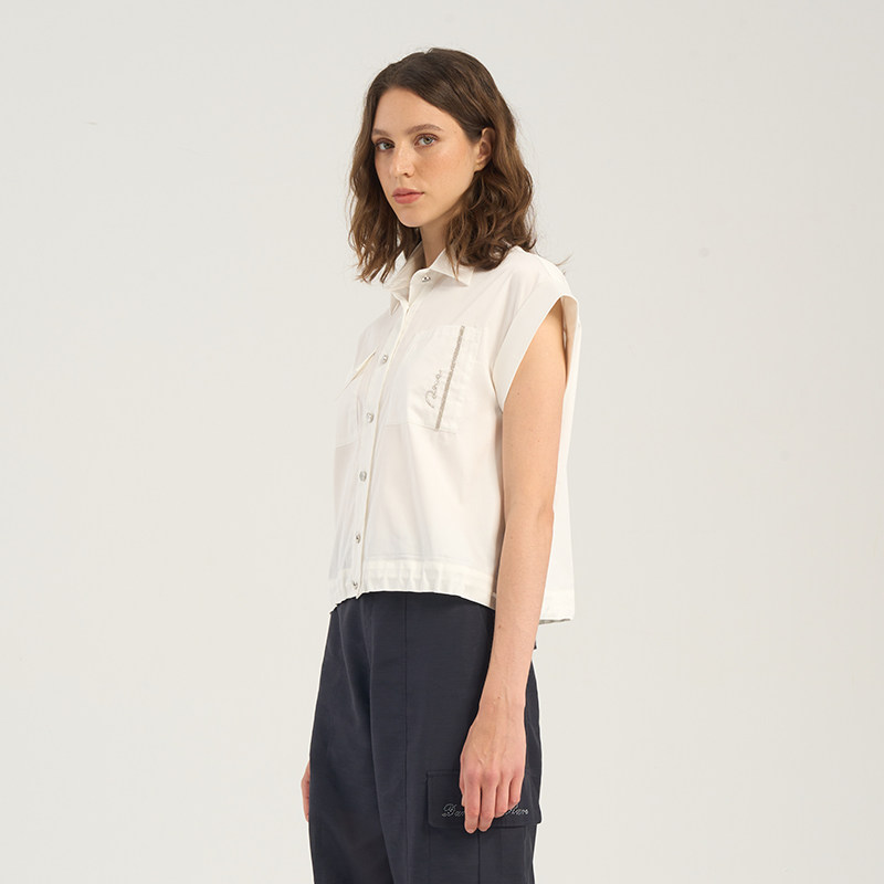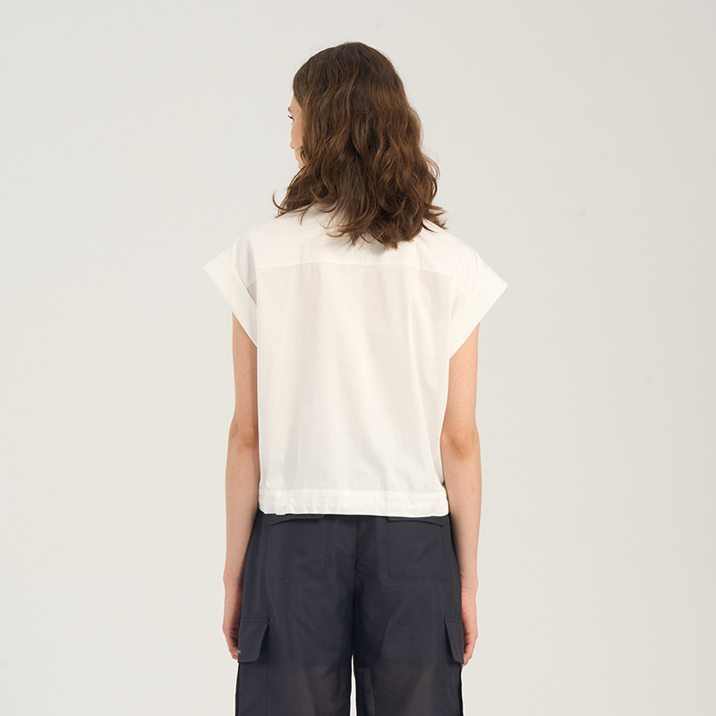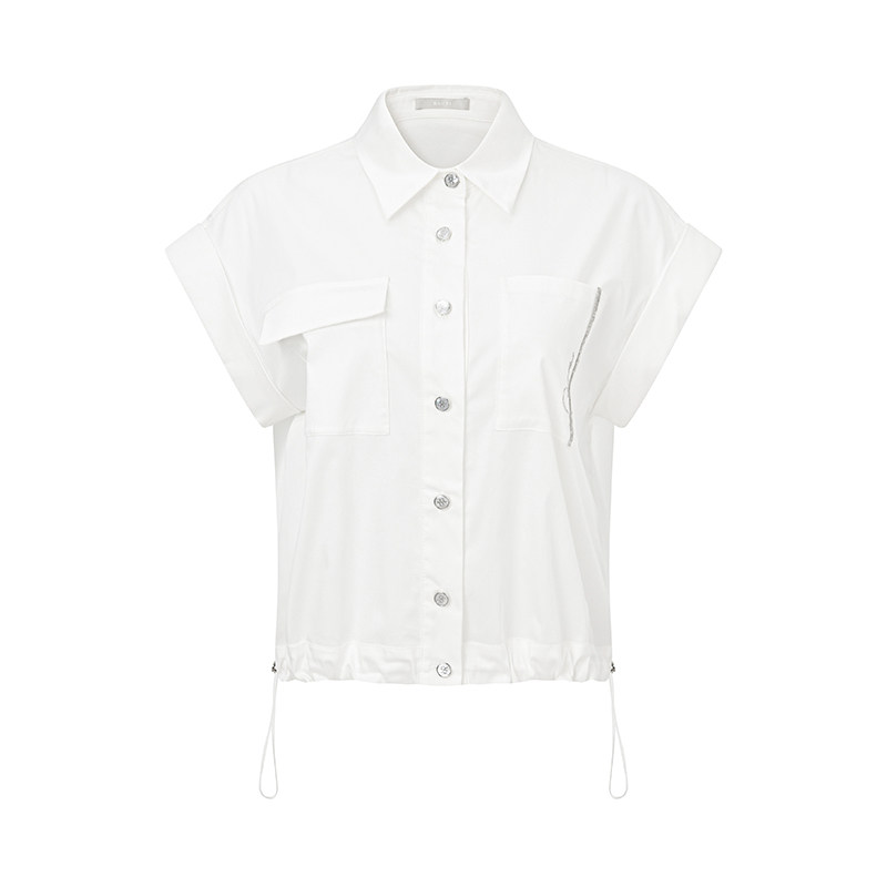 RARE威雅女装 夏季新款女士白色衬衣连肩袖工装短袖衬衫