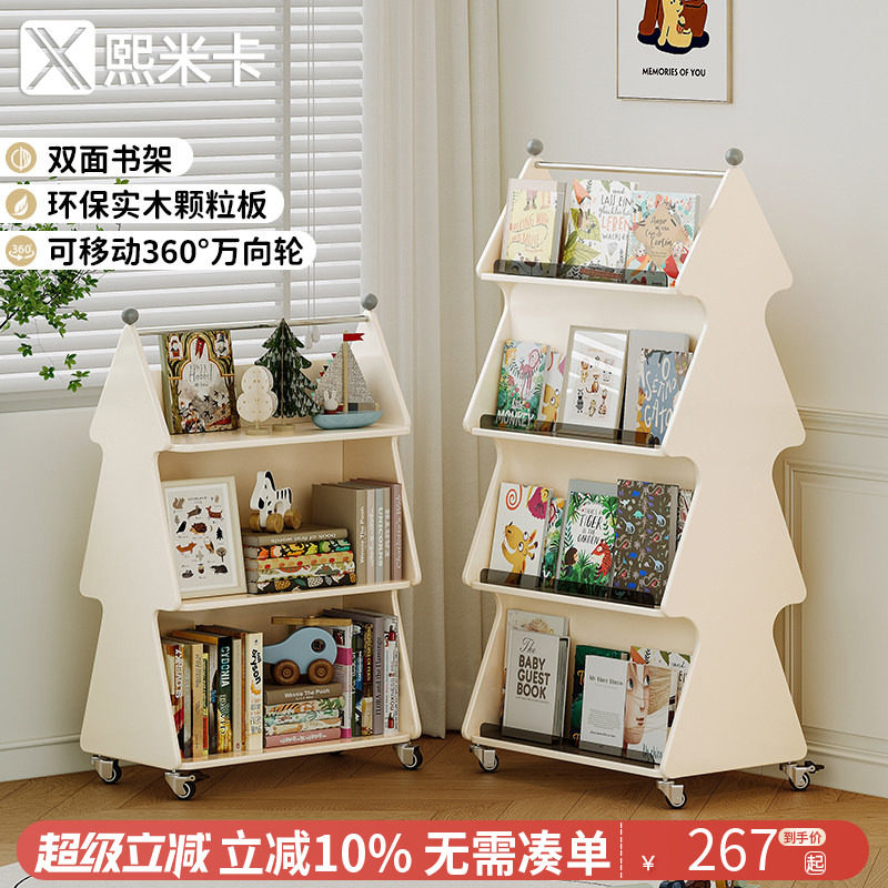 书架儿童绘本架旋转收纳架可移动落地置物架多层双面宝宝书柜带轮