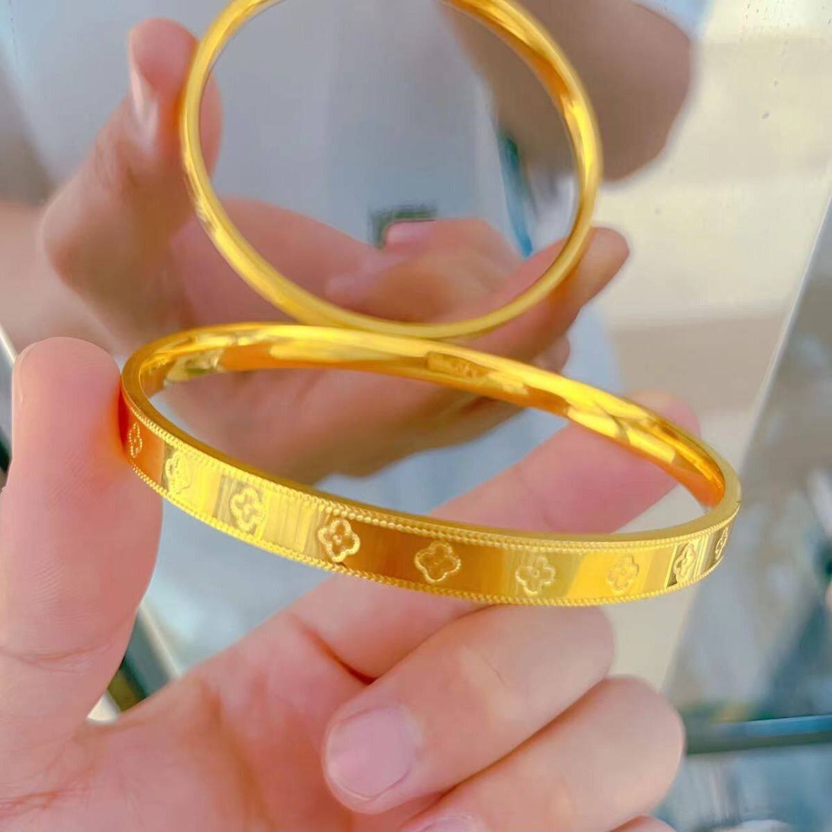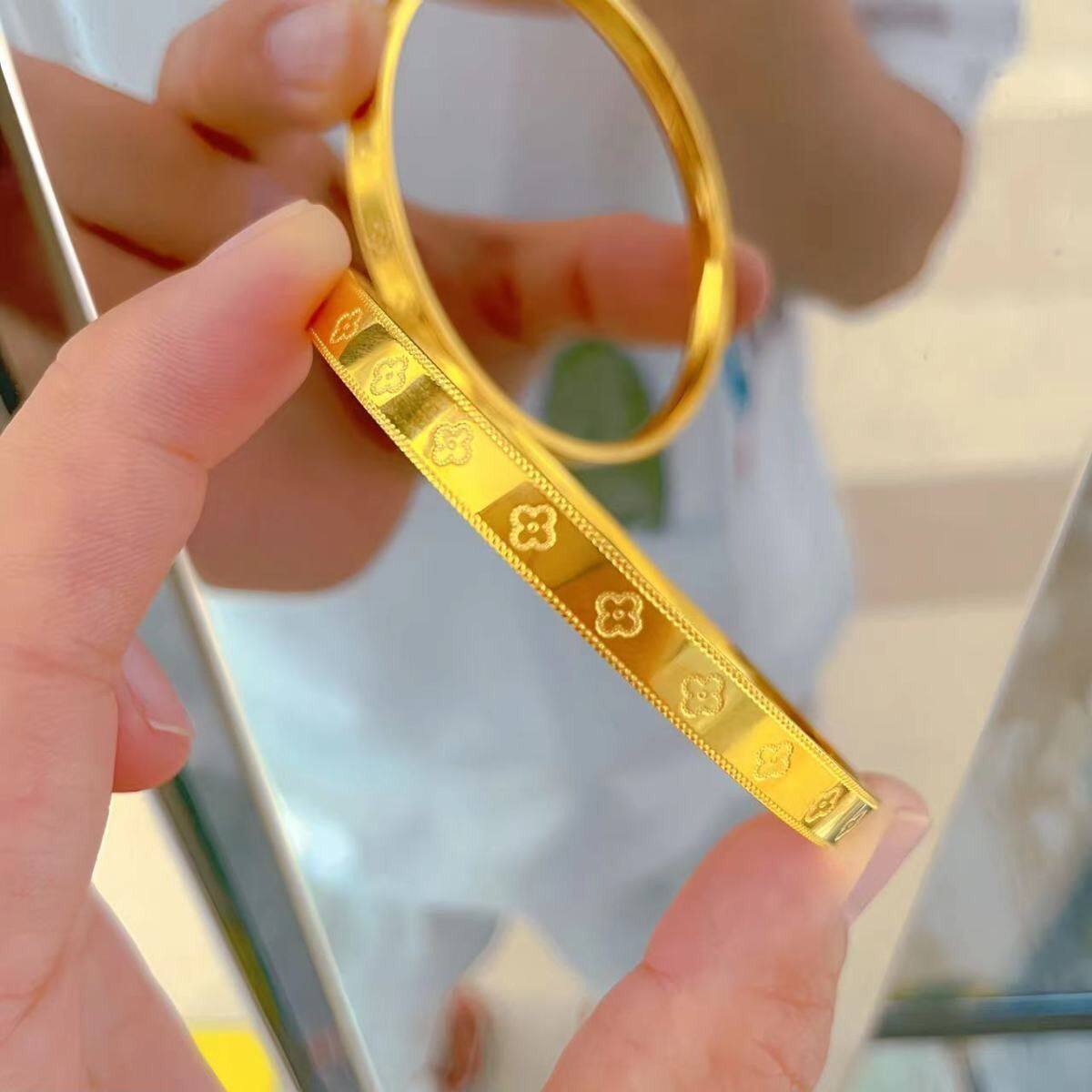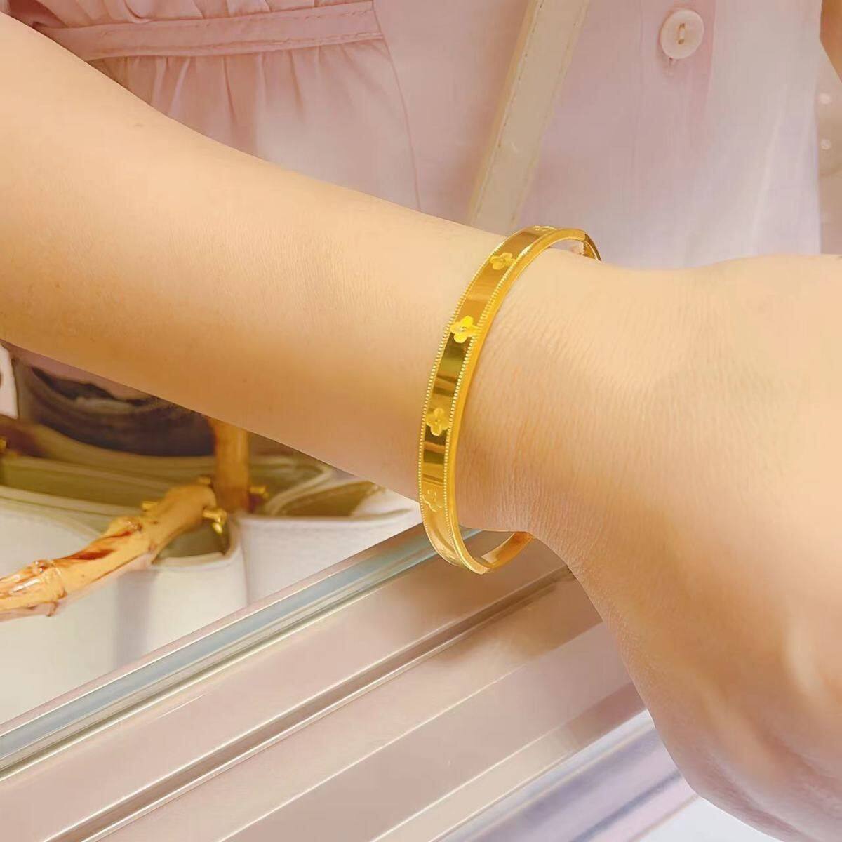 四叶草手镯仿金时尚爆款车花四叶草镀金素圈镯子送女友妈妈礼物