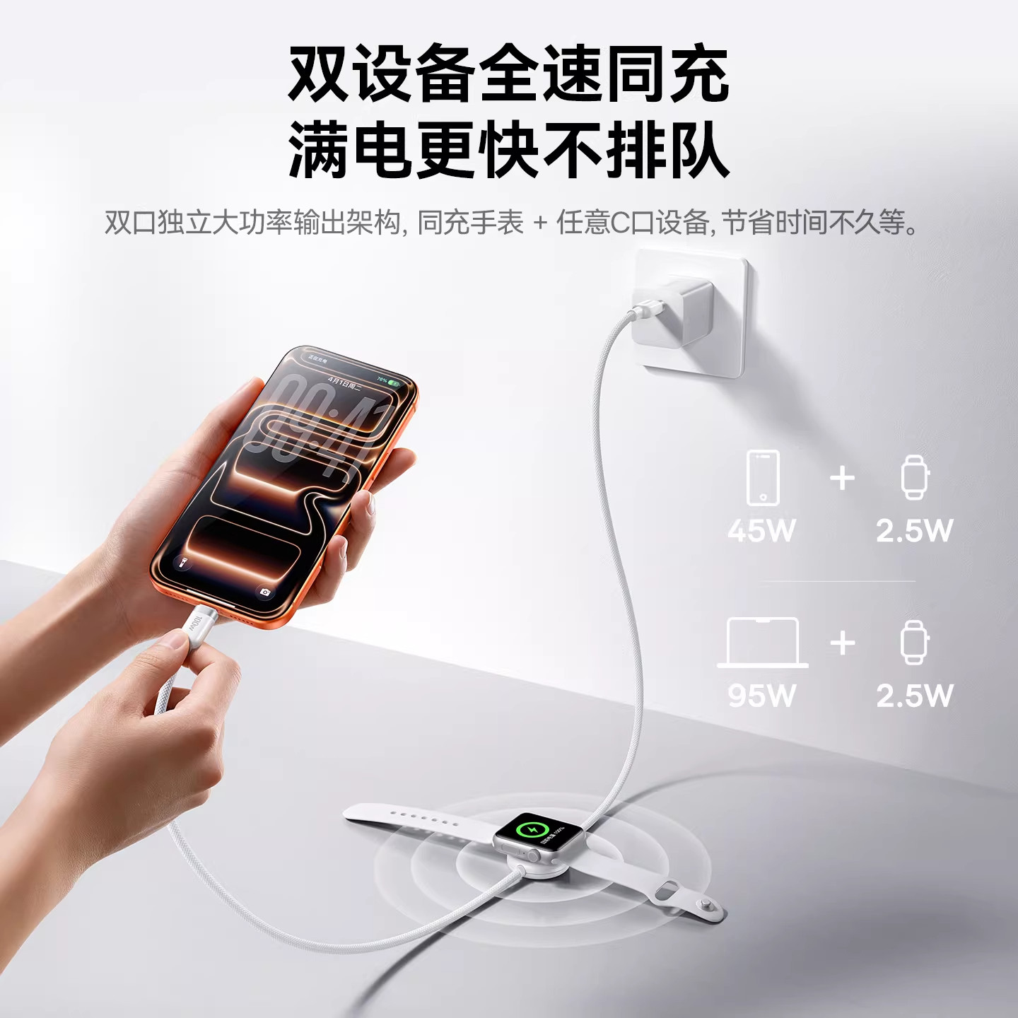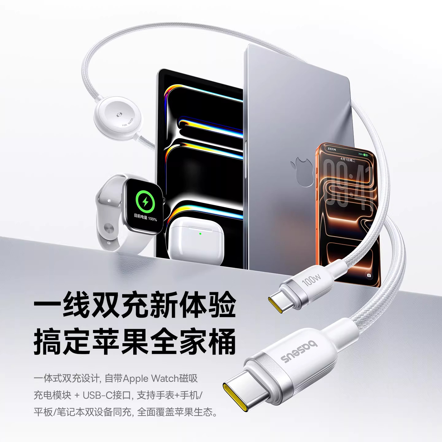 倍思适用苹果手表充电器线AppleWatch磁力快速充电器转USB-C连接线iwatchs11二合一Ultra3手机iPhone17ProMax