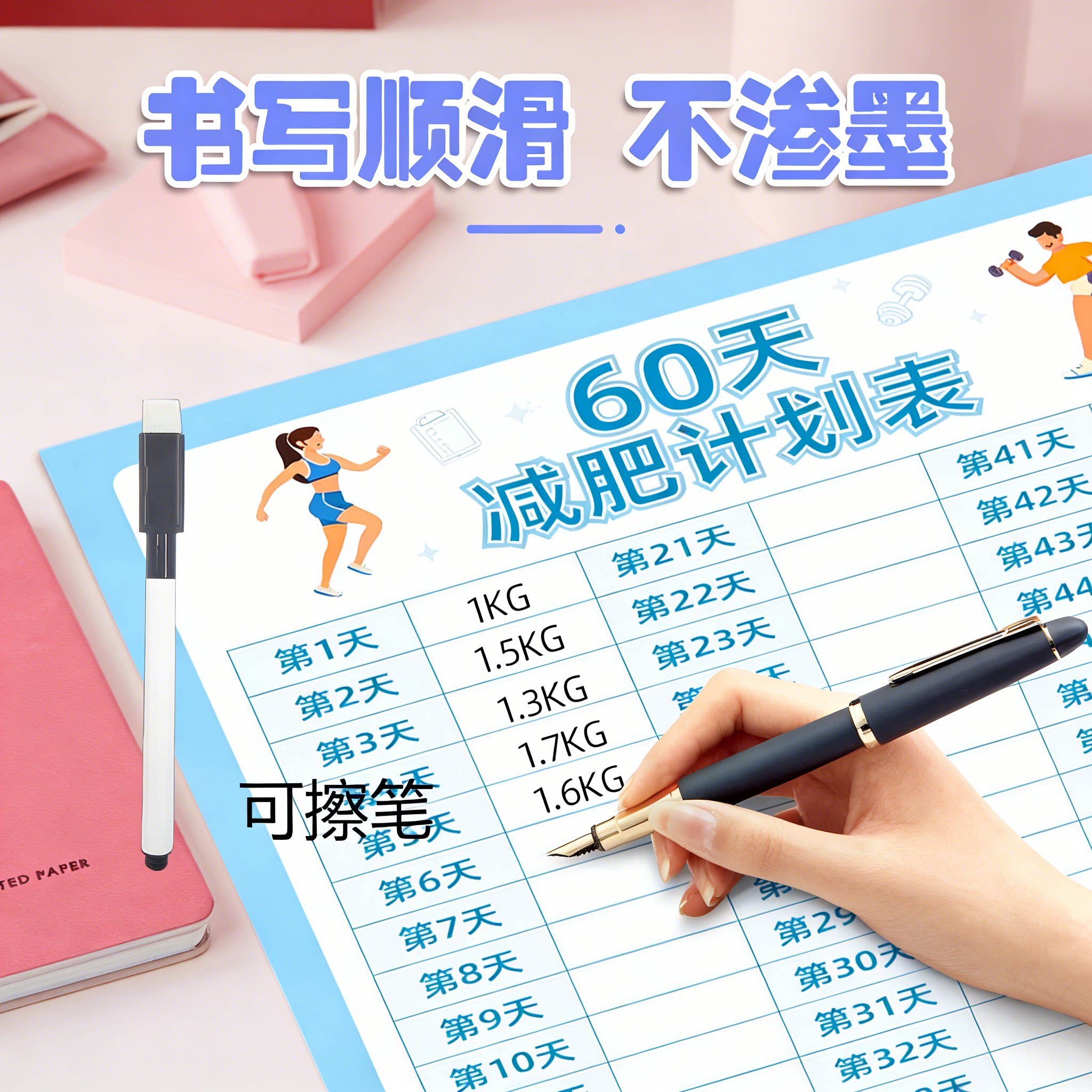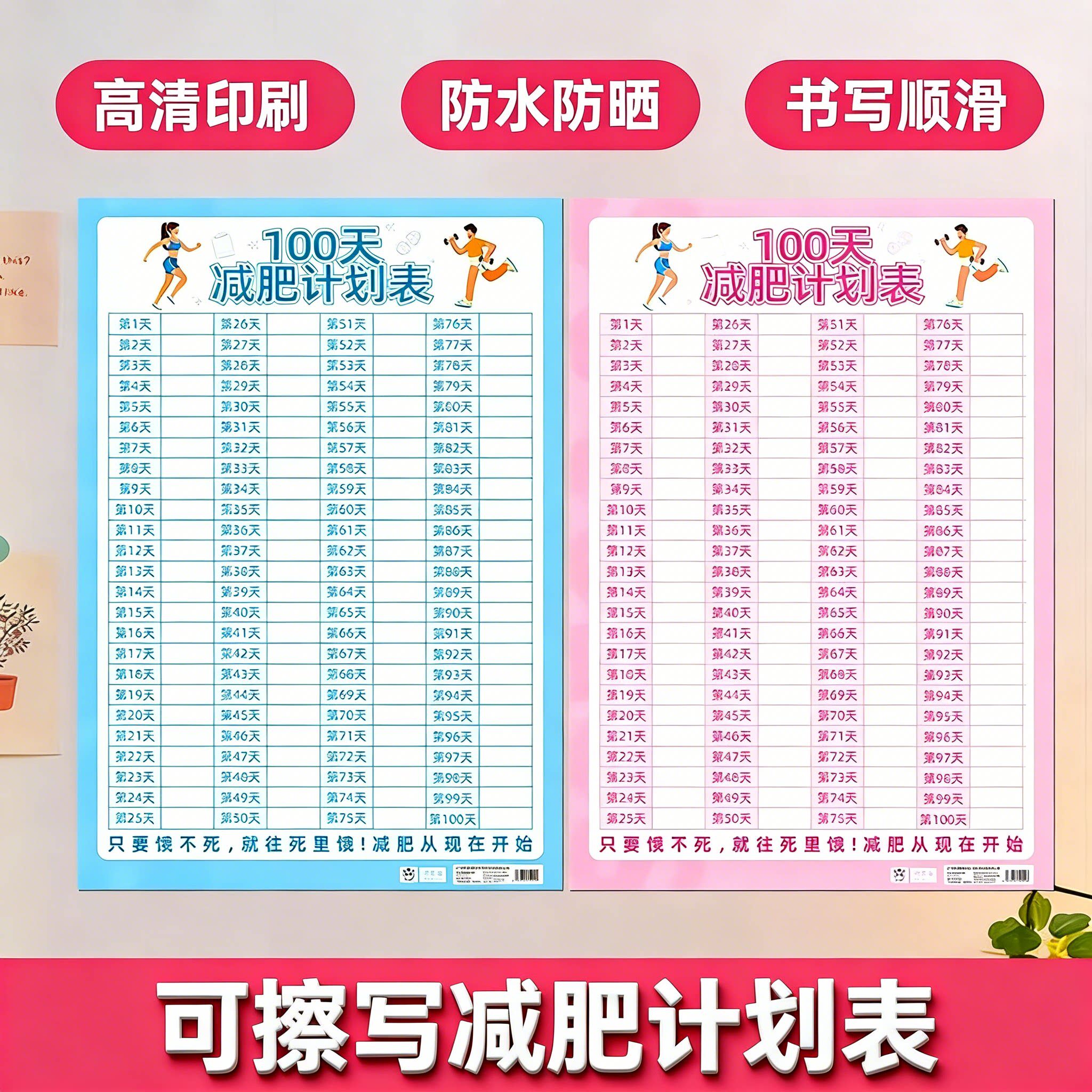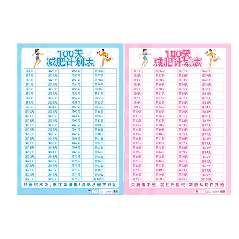100天减肥计划表健身体重打卡墙贴自律瘦身重量登记表百日减重目标提醒监督神器体重变化管理日记录表贴墙上