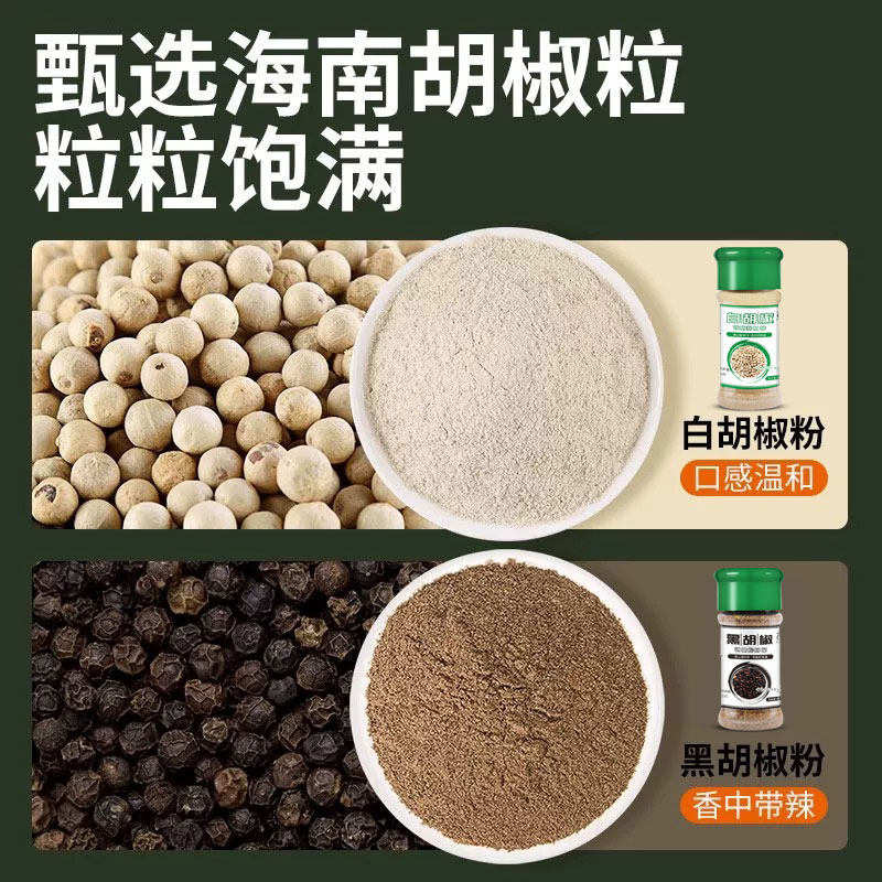 正宗海南胡椒粉家用黑白胡椒粉组合香料厨房调味品蒸煮牛排搭配