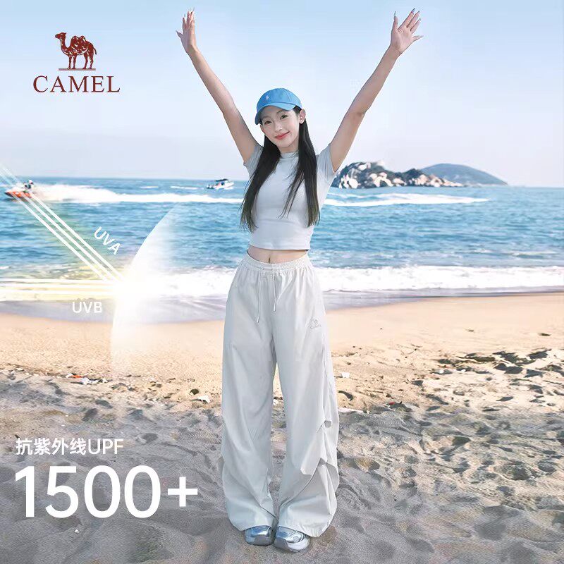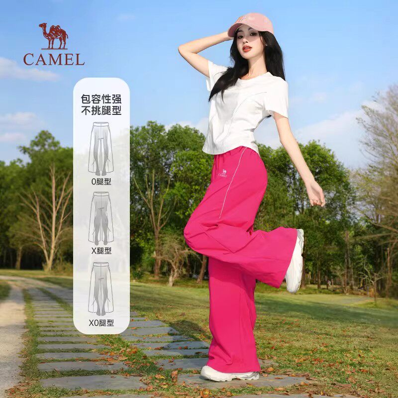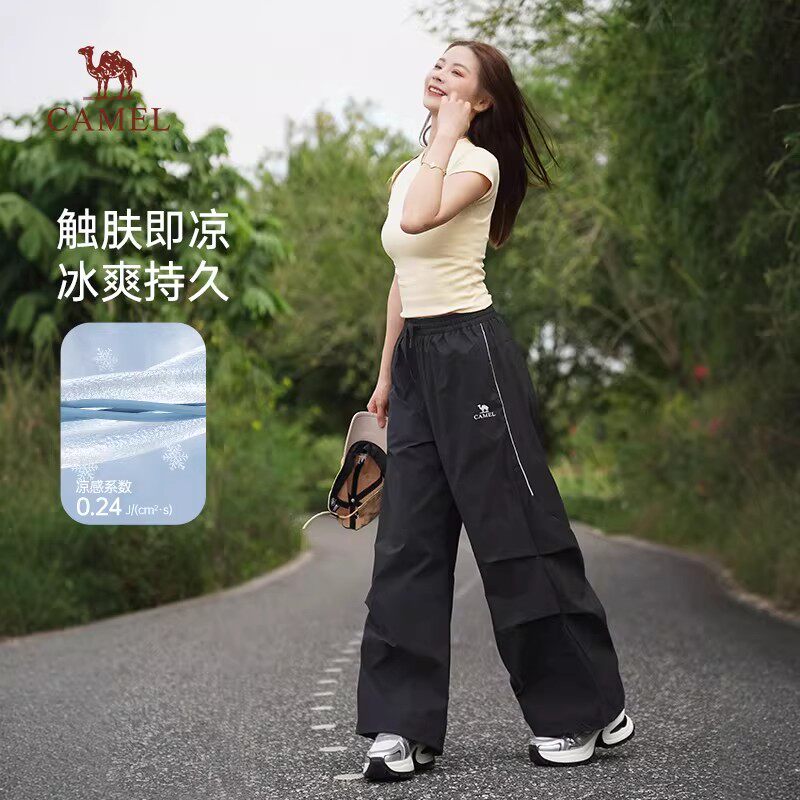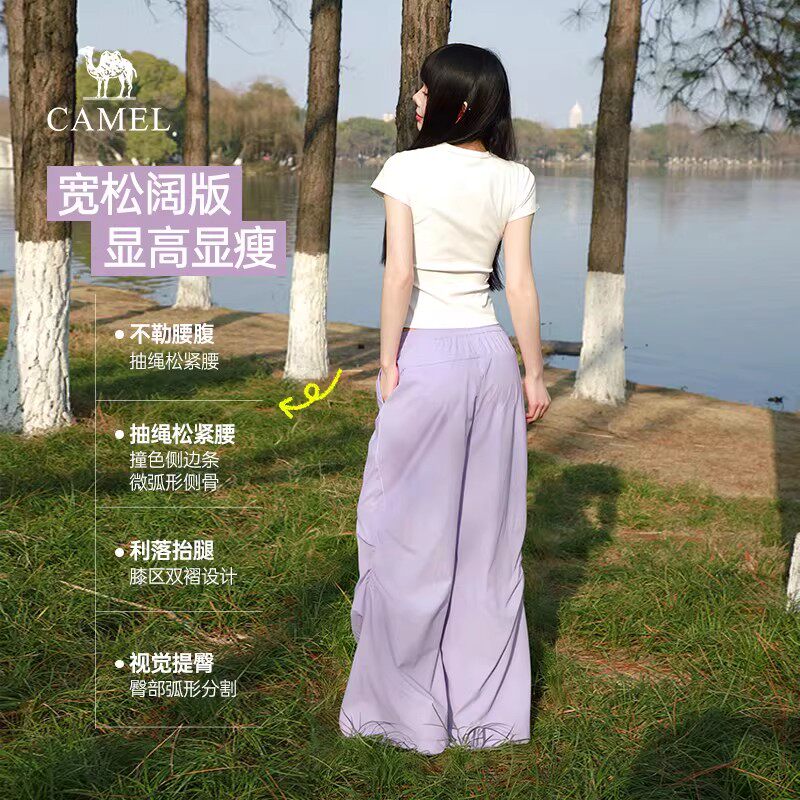 骆驼女装运动裤2026春新款紫色凉感防晒速干宽松工装裤休闲阔腿裤