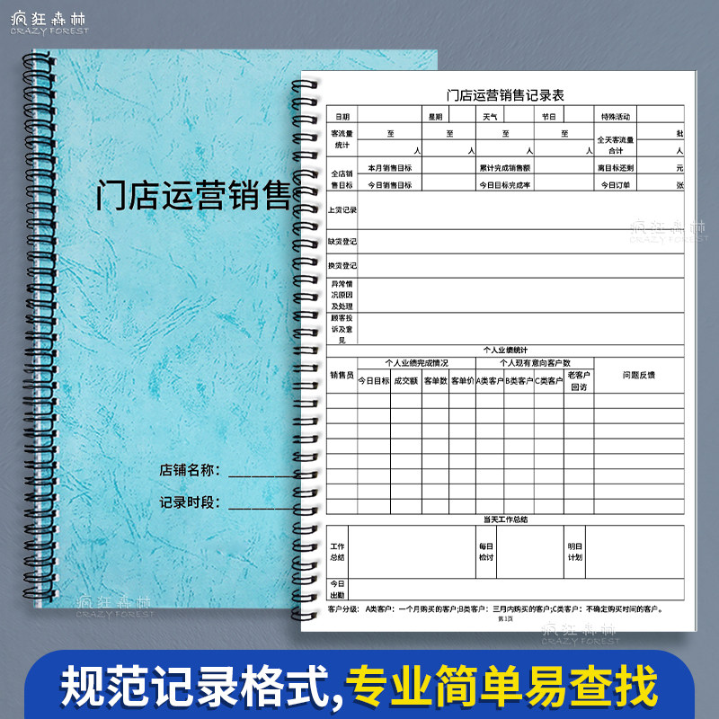 门店运营销售记录本门店会议记录实体店业务员业绩提成表服装店鞋店销售金额统计每日营业记账本店铺管理日志