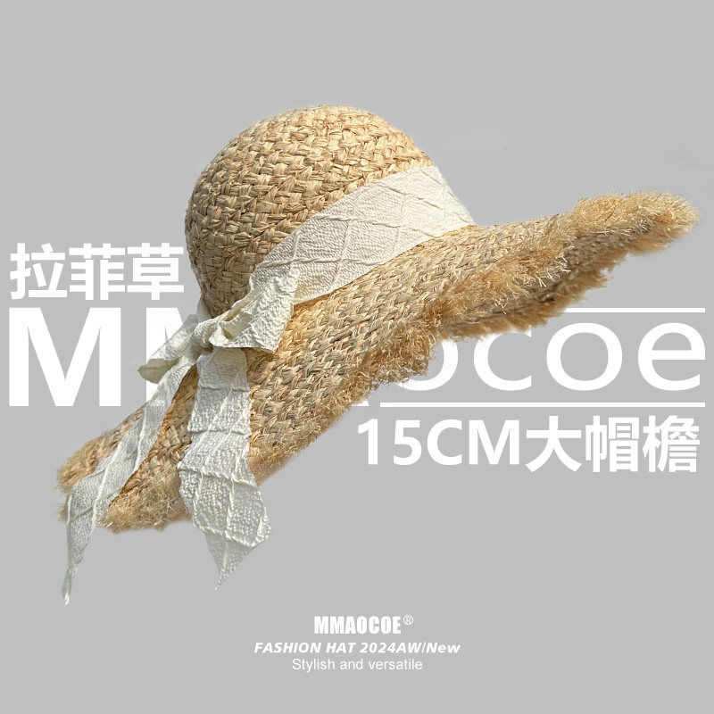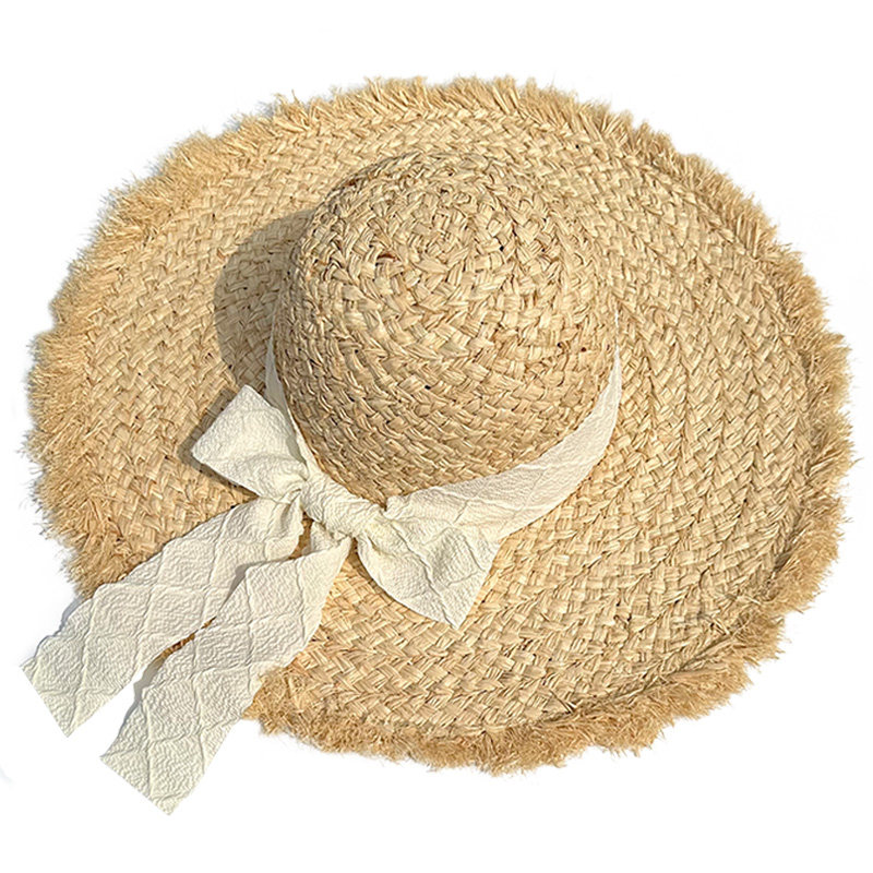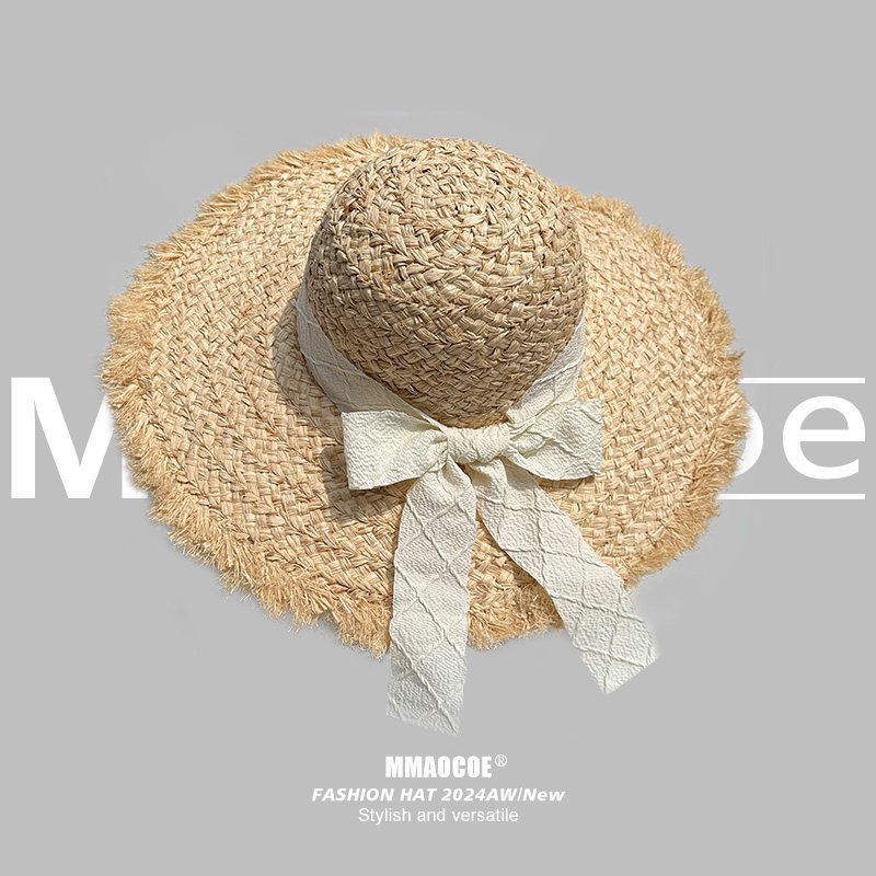 毛边出游防晒帽休闲逛街草帽大帽檐蝴蝶结旅行大檐