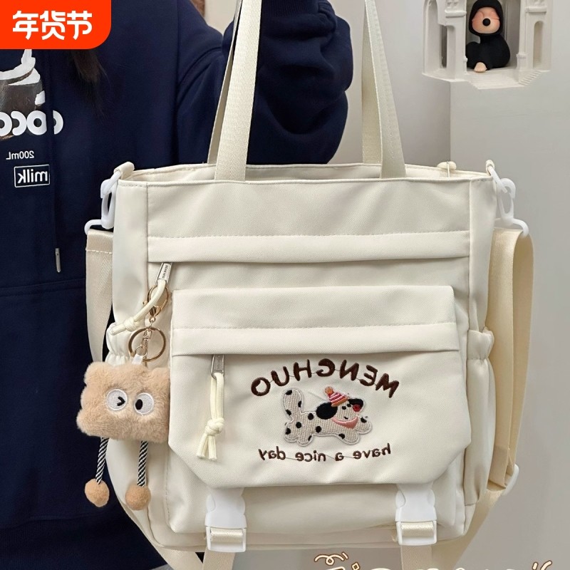 茶话会简约百搭大容量单肩包女可爱手提补习袋学生上课休闲斜挎包
