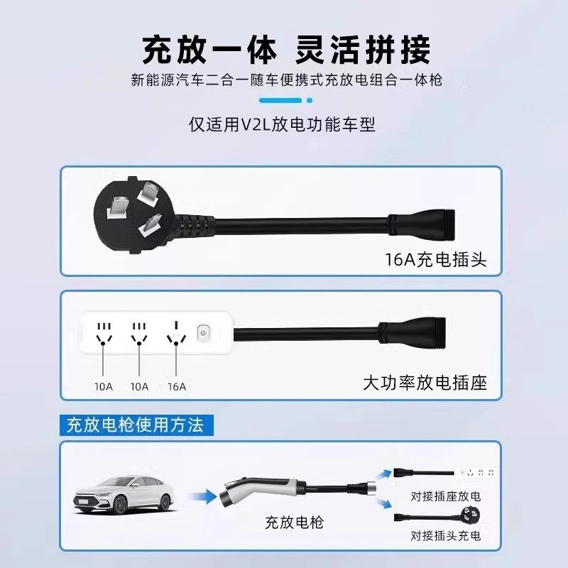 公牛款新能源汽车随车充电放电一体枪便携智能二合一通用排插放电