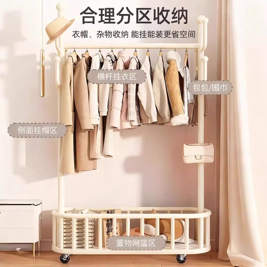 晾衣架落地家用可移动卧室凉衣架阳台挂衣服架子室内简易杆衣帽架