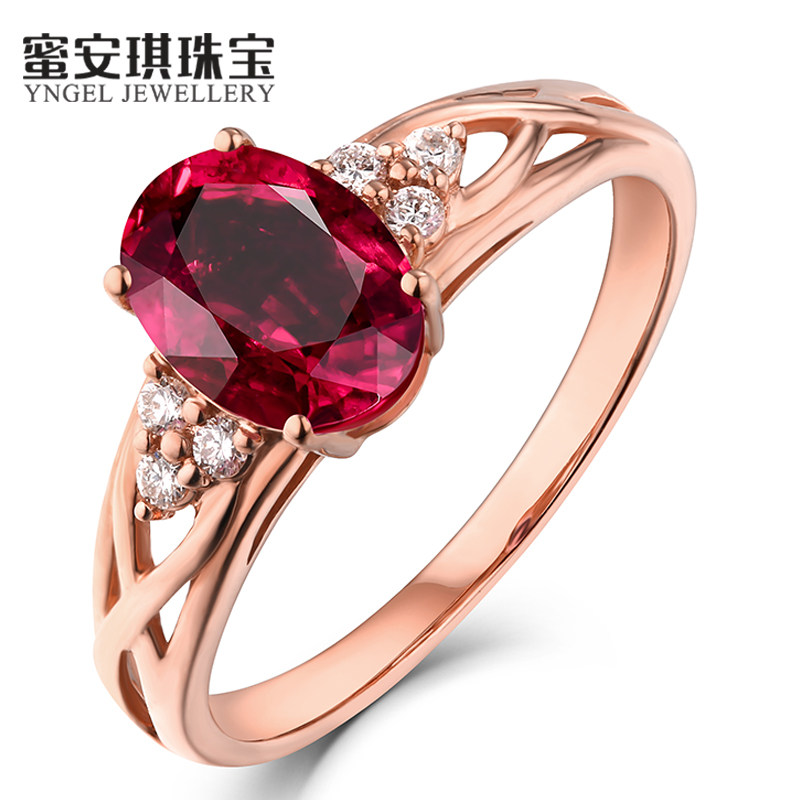蜜安琪 1.1克拉天然鸽血红碧玺戒指女 18k金彩色宝石钻戒