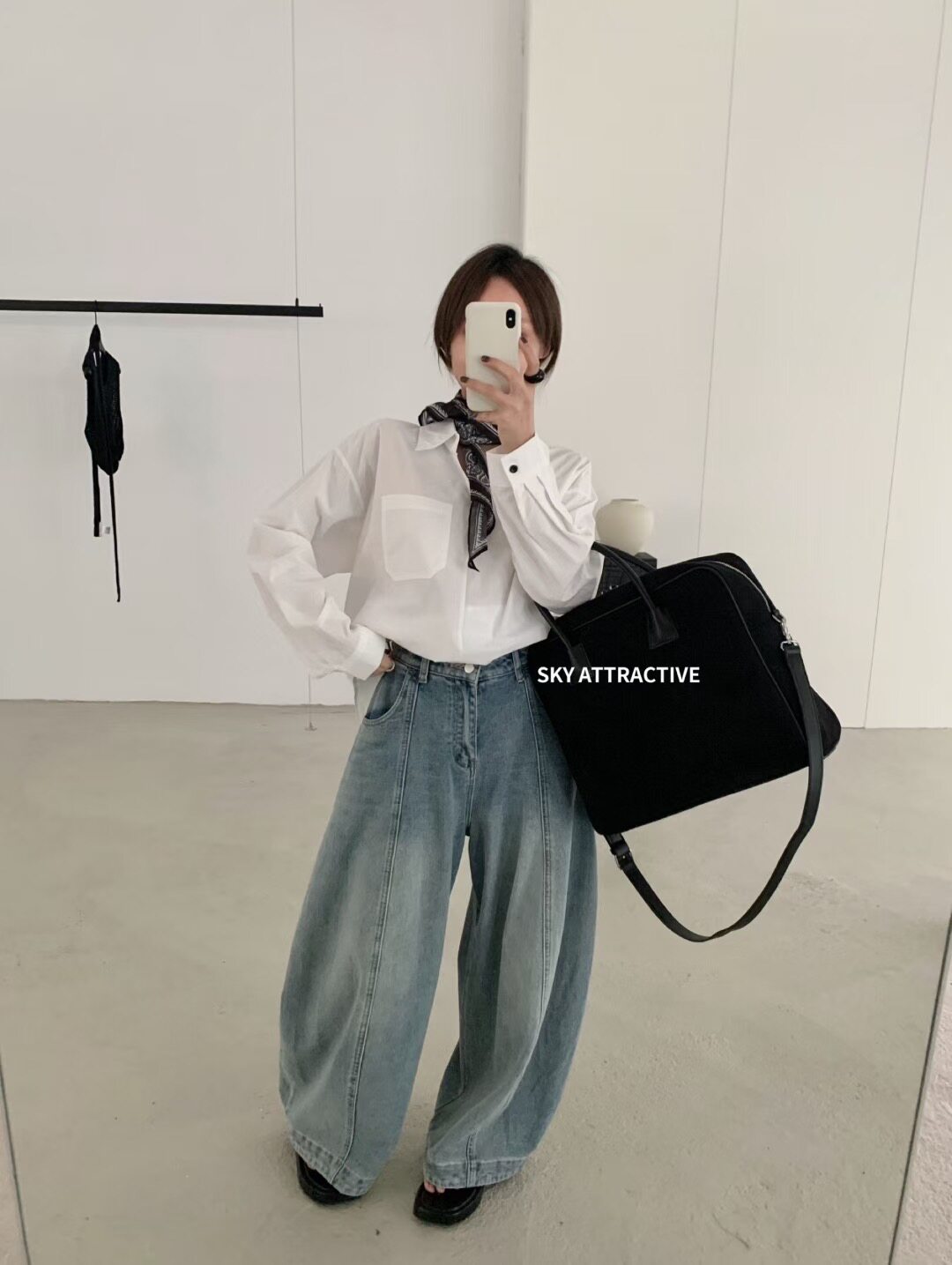 四面弹丹宁色牛仔阔腿裤25年新款宽松显瘦牛仔长裤89173
