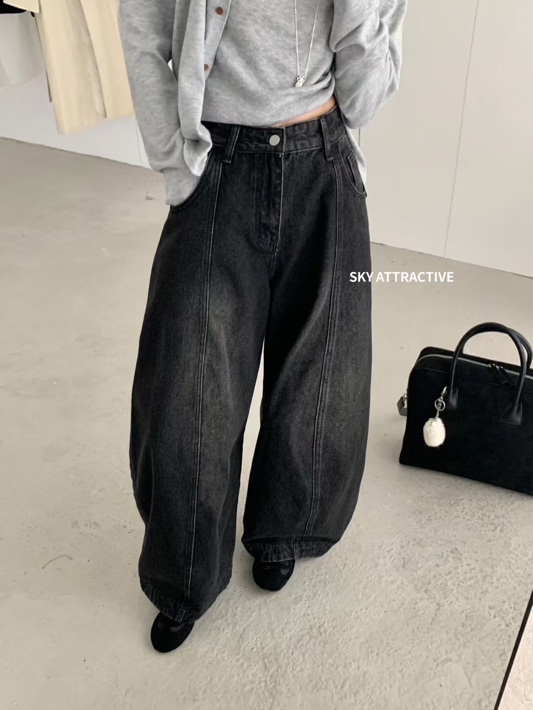 sky3002韩国2025秋冬季新款时尚个性显瘦高腰弯刀裤水洗牛仔裤女